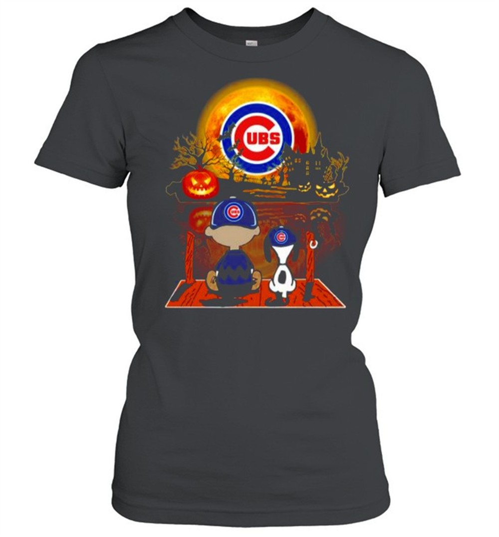 Snoopy and Charlie Brown Pumpkin Chicago Cubs Halloween Moon shirt
