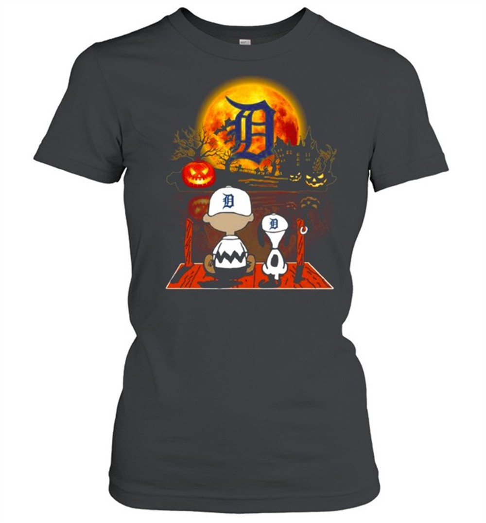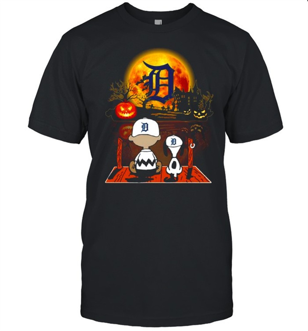 Snoopy and Charlie Brown Pumpkin Detroit Tigers Halloween Moon shirt