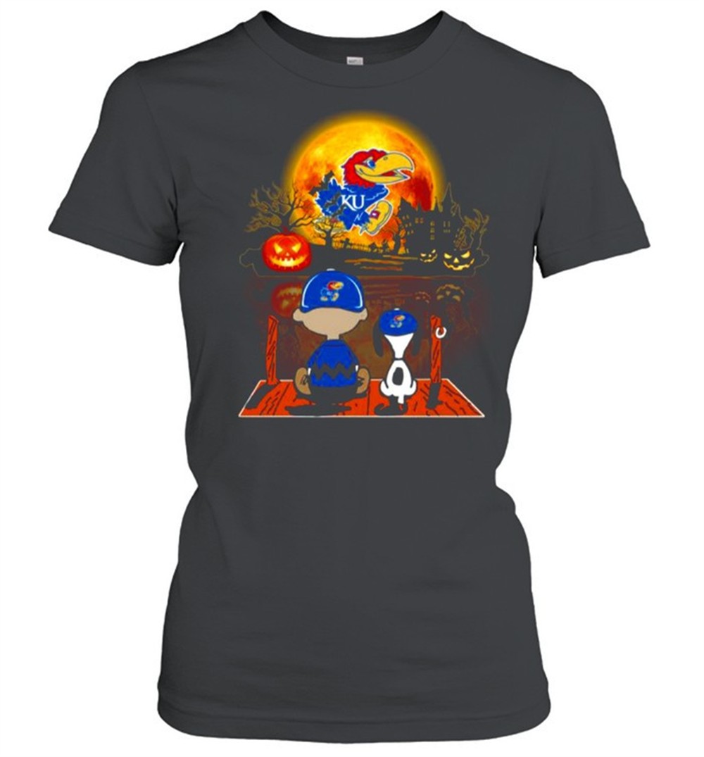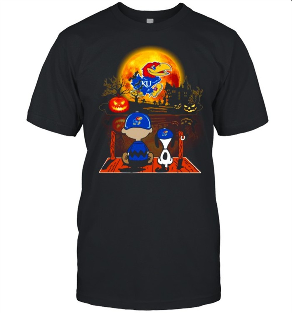 Snoopy and Charlie Brown Pumpkin Kansas Jayhawks Halloween Moon shirt