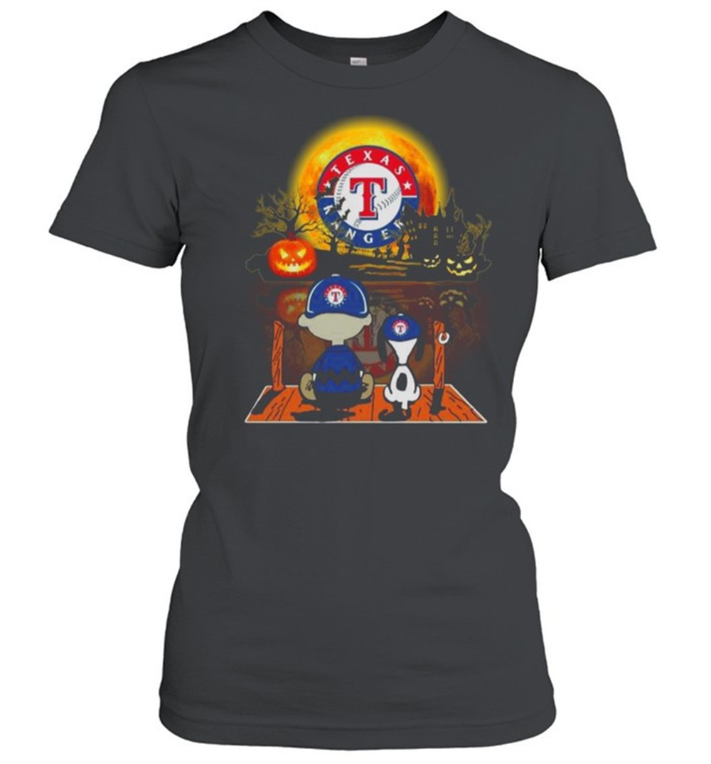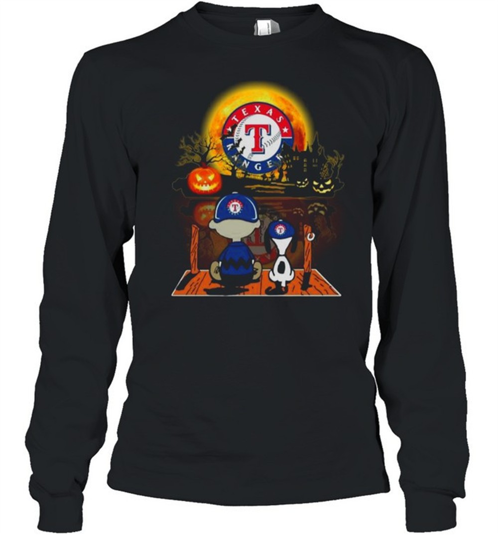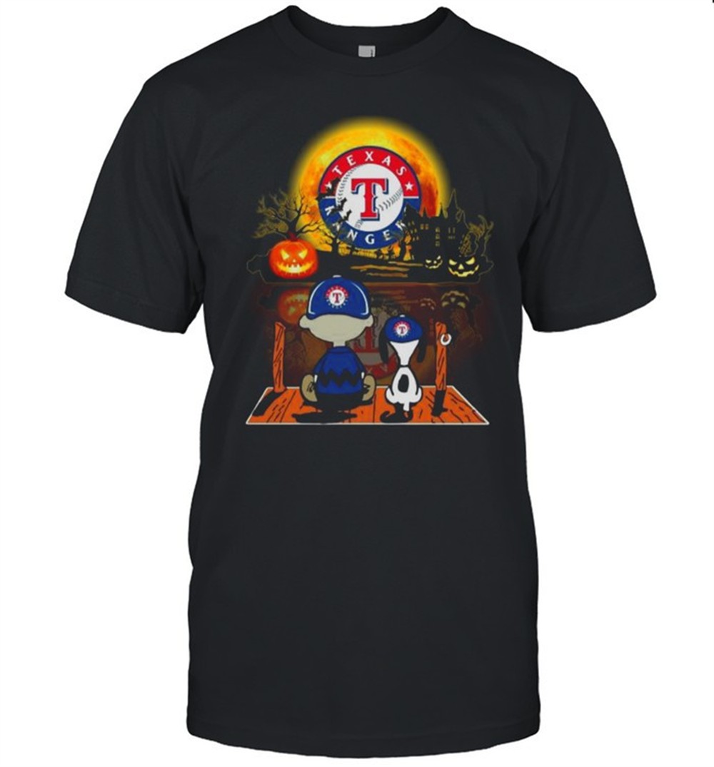 Snoopy and Charlie Brown Pumpkin Texas Rangers Halloween Moon shirt