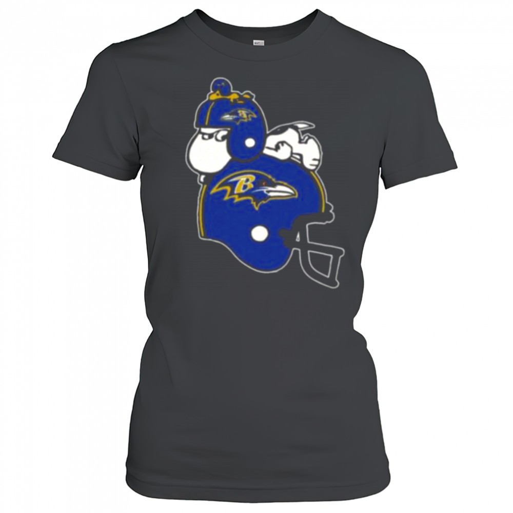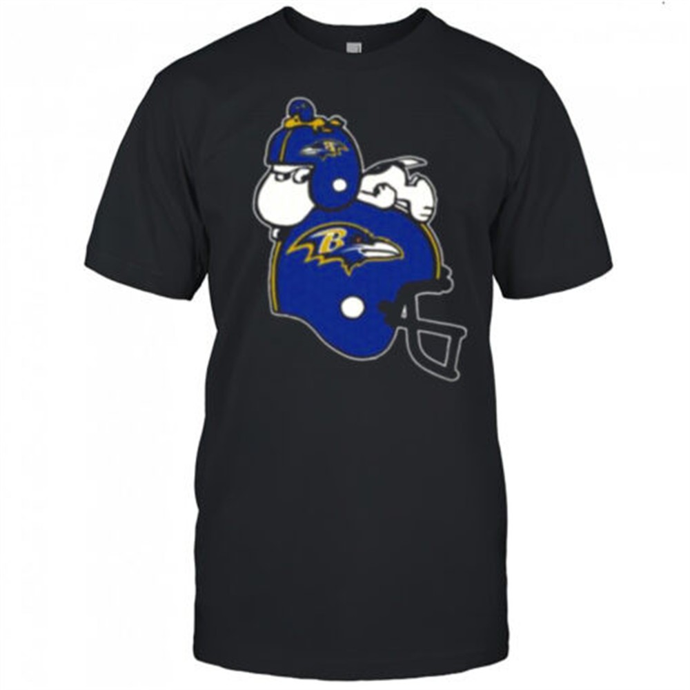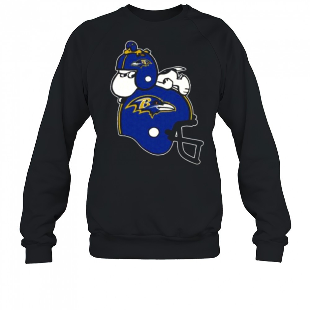 Snoopy And Woodstock Resting On Baltimore Ravens Helmet Shirt
