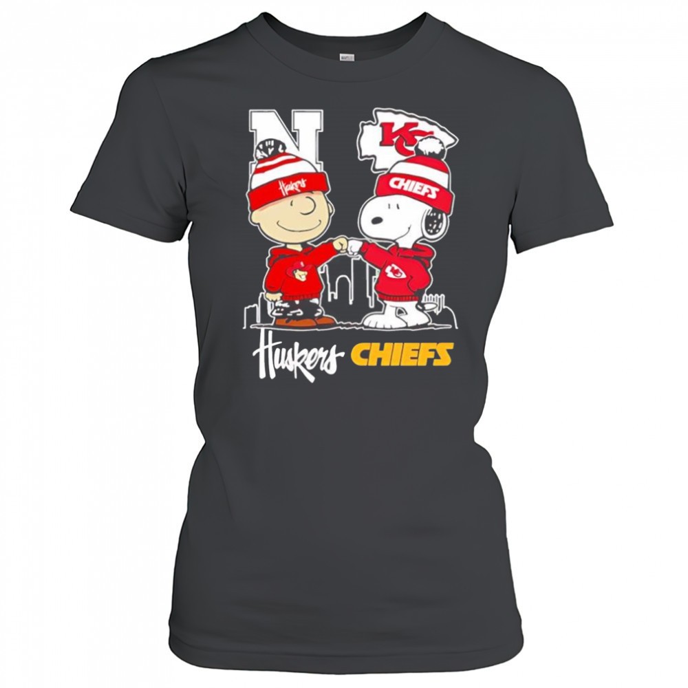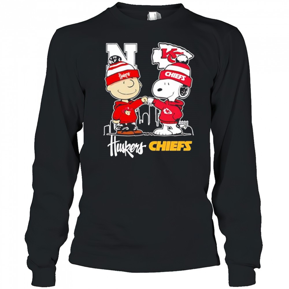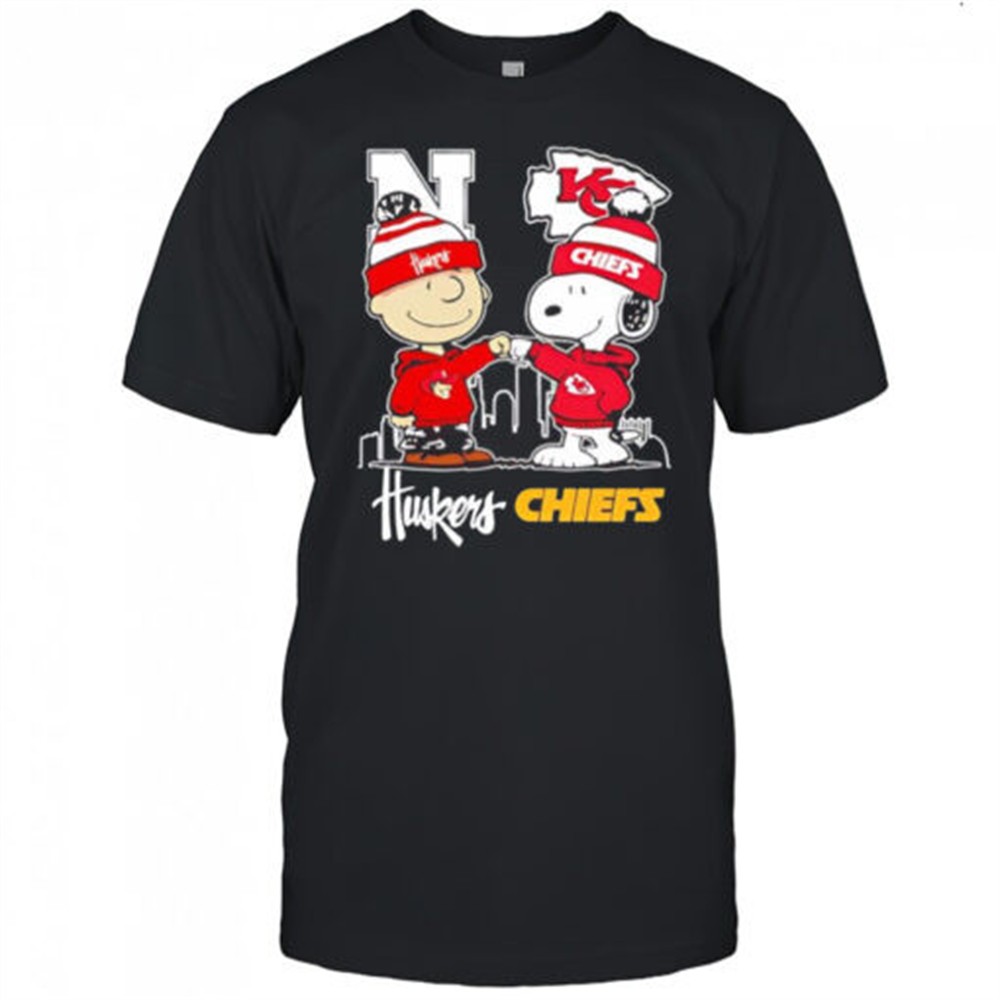 Snoopy & Charlie Brown fist bump Nebraska Huskers x Kansas City Chiefs shirt