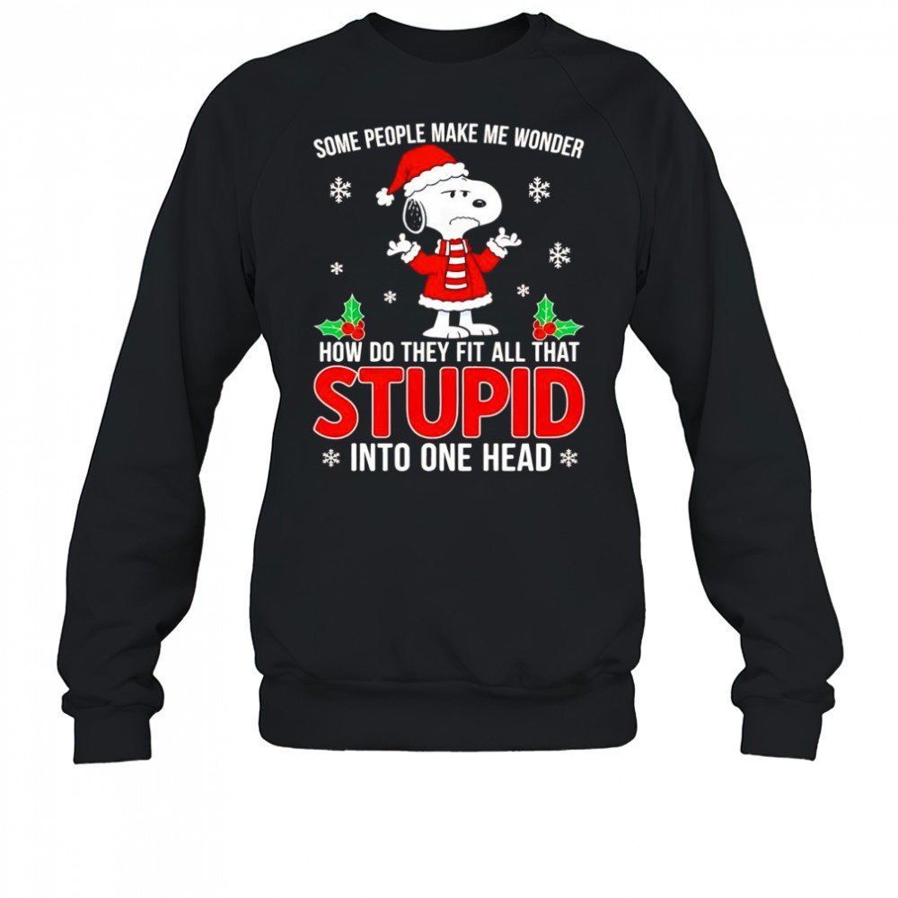Snoopy Christmas some people make me wonder how do they fit all that stupid into one head shirt