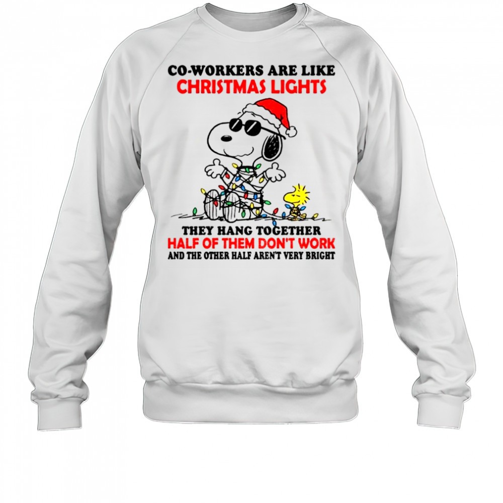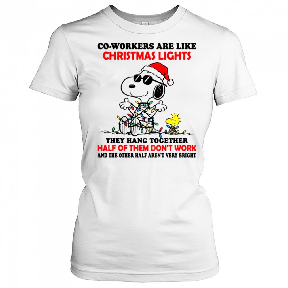 Snoopy Woodstock co-workers are like christmas lights they hang together half of them dont work shirt