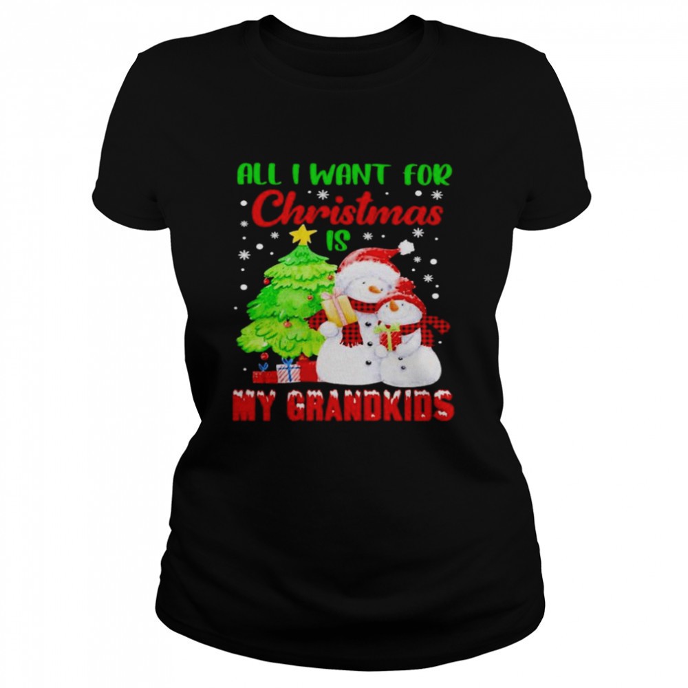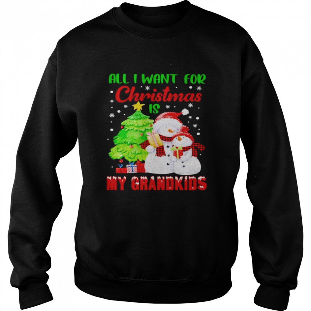 Snowman all I want for Christmas is my grandkids shirt