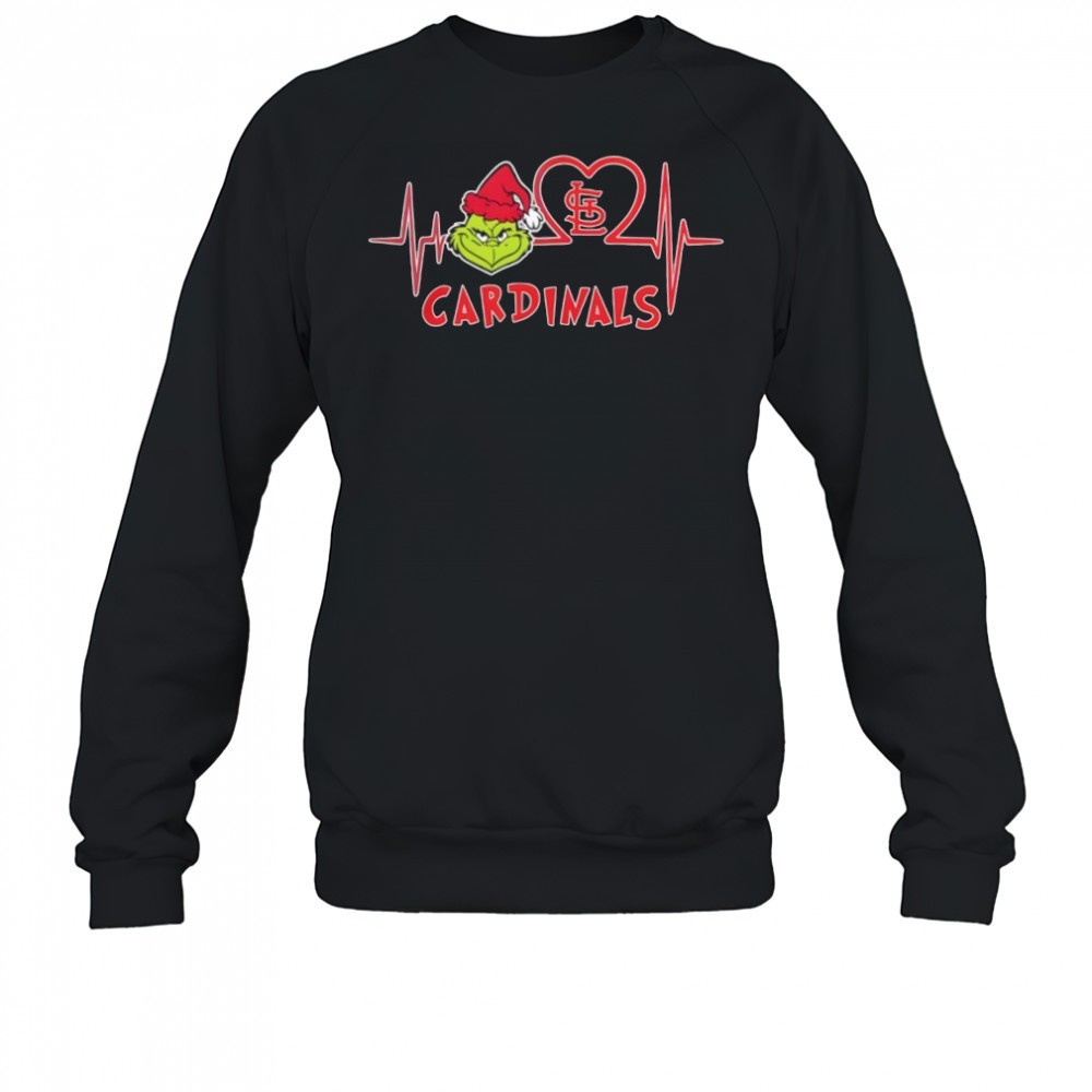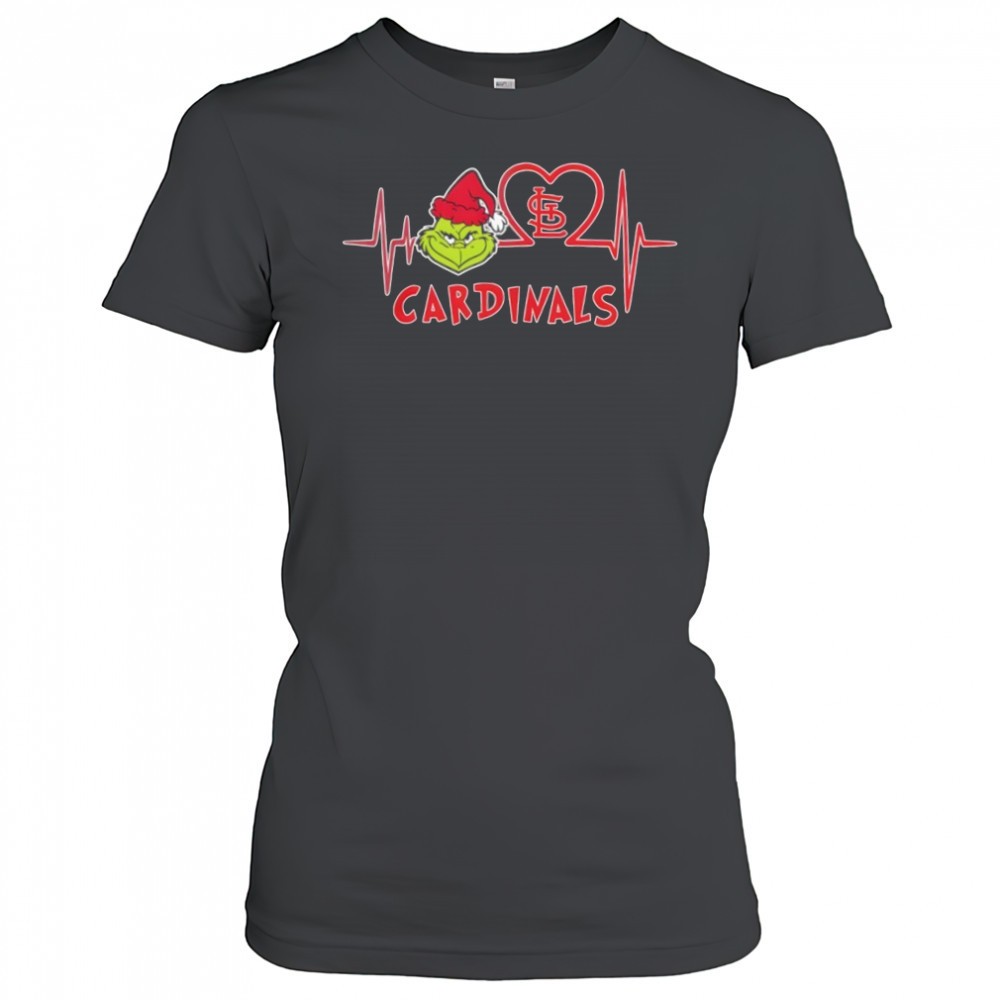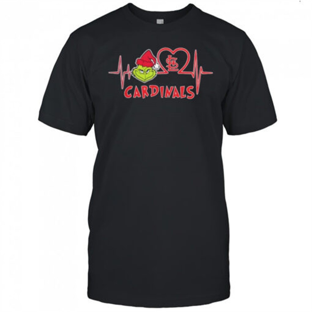 St Louis Cardinals x Grinch Santa Heartbeat Love Logo Merry Christmas Shirt
