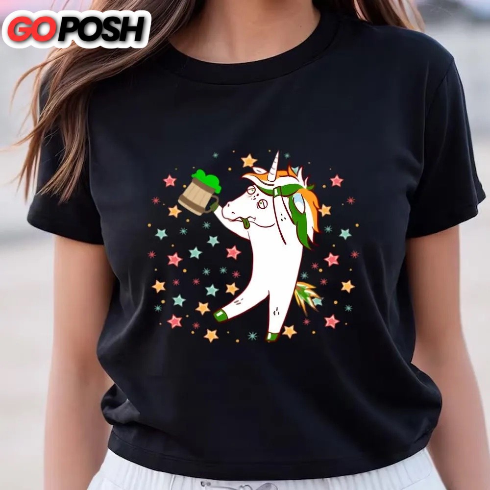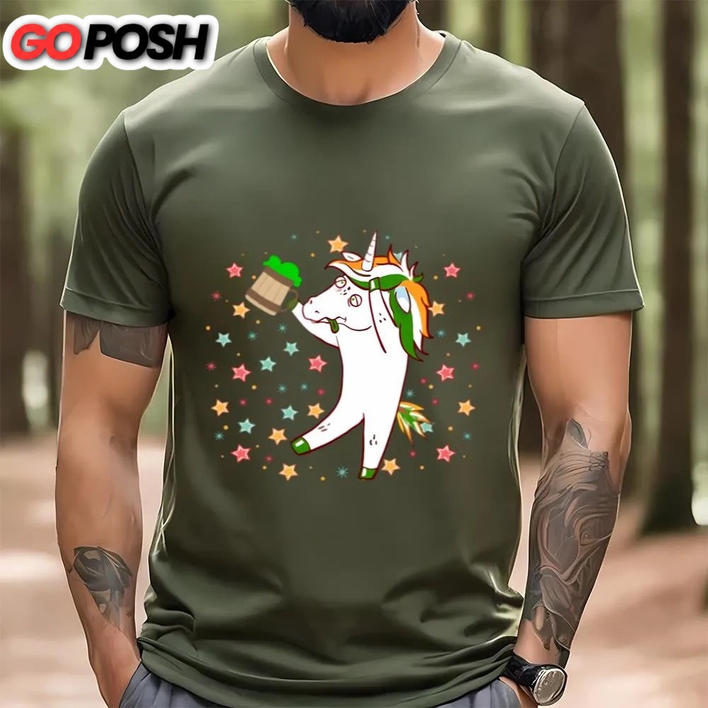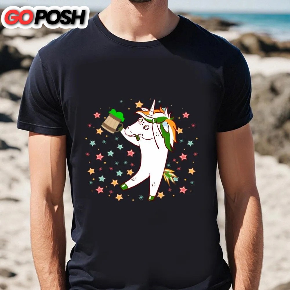 St Patricks Day T Shirt, Drunk Unicorn with Beer Funny St Patricks Day T-Shirt, Funny St Patricks Day Shirts