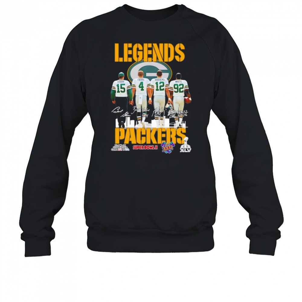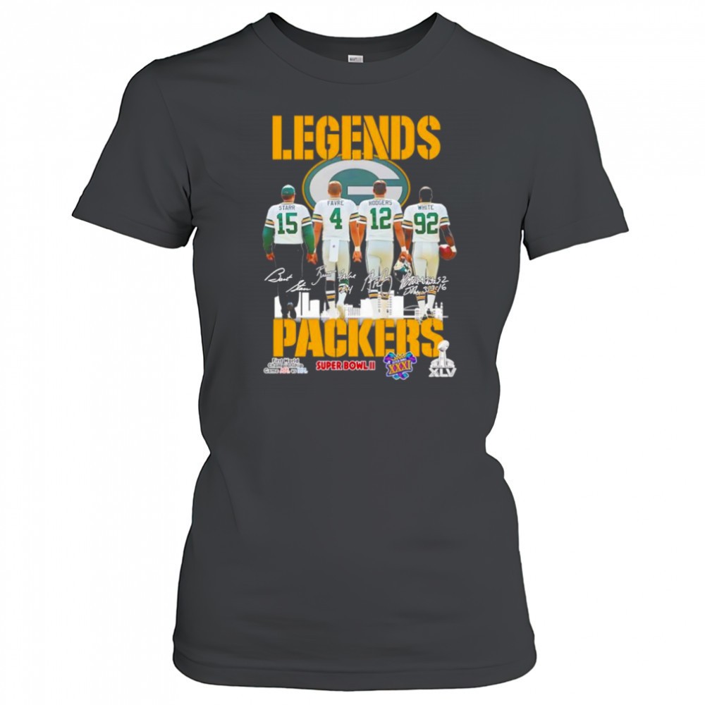 Starr Favre Rodgers and White Legends Green Bay Packers signature shirt