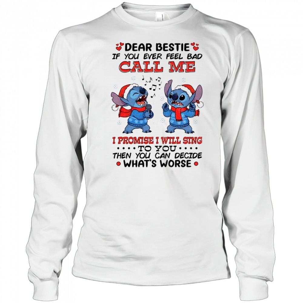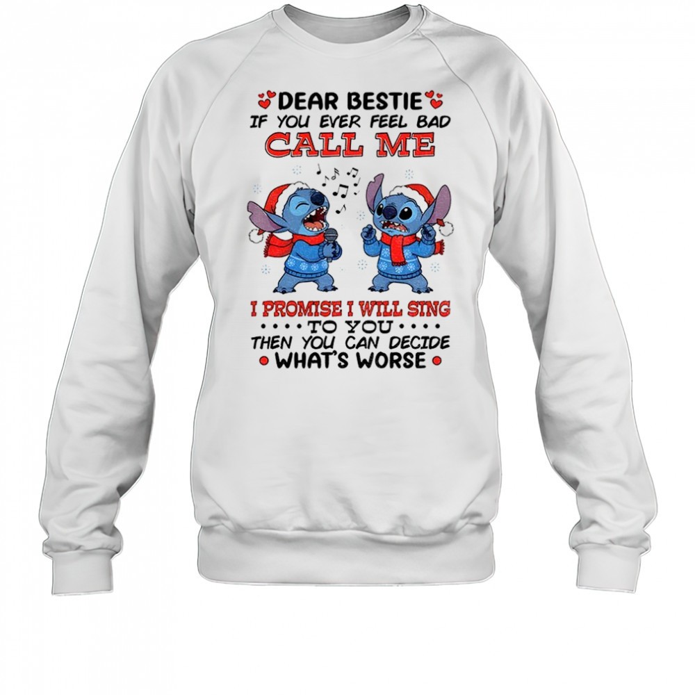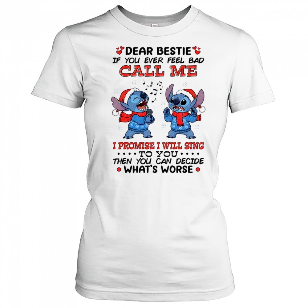 Stitch dear bestie if you ever feel bad call me I promise I will sing to you then you can decide Christmas shirt