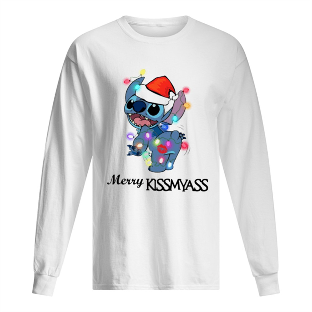 Stitch merry Kissmyass light Christmas shirt