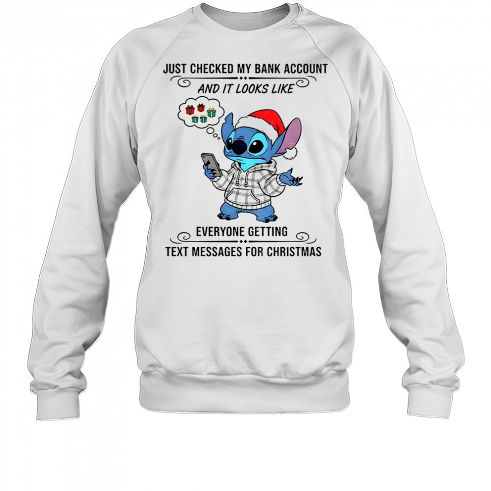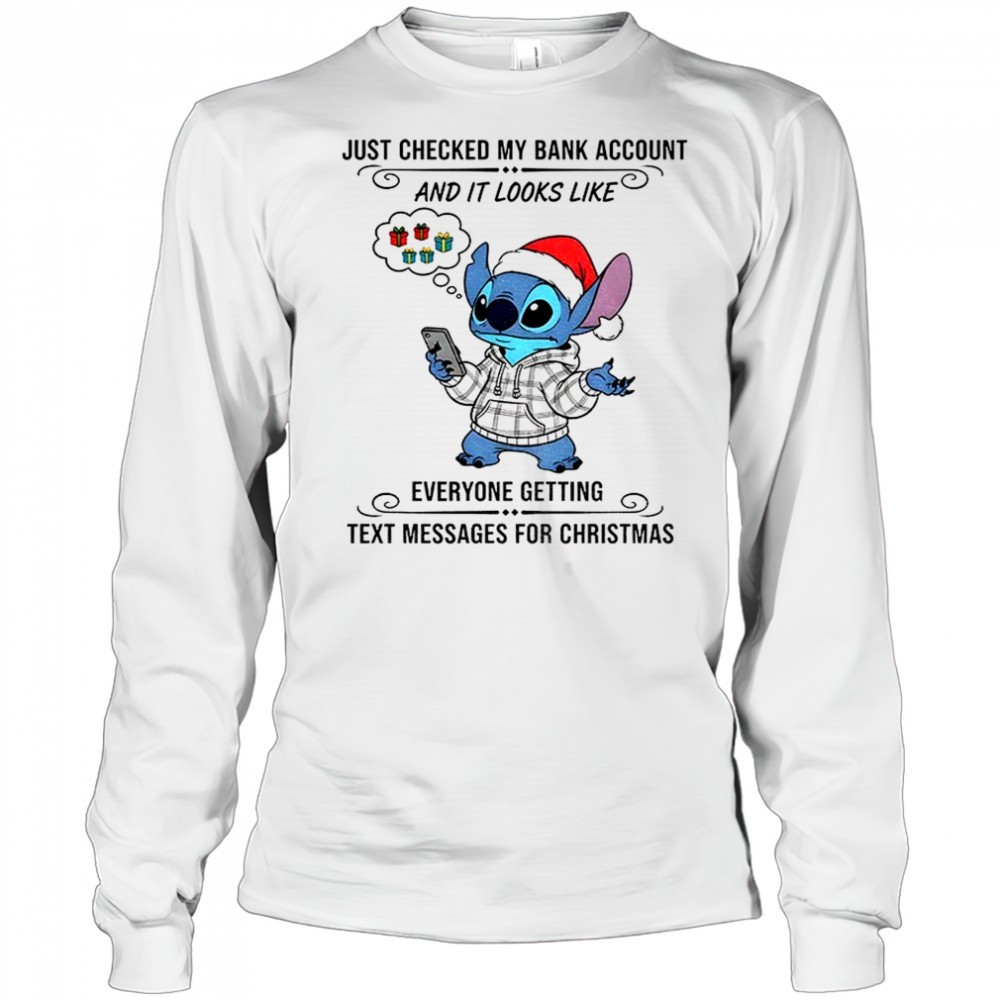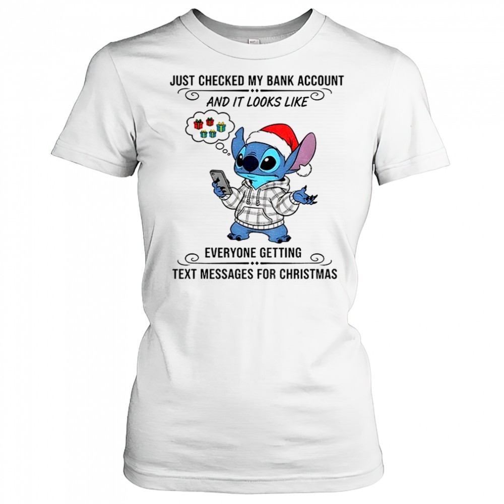 Stitch Santa hat just checked my bank account and it looks like everyone getting text messages for Christmas shirt
