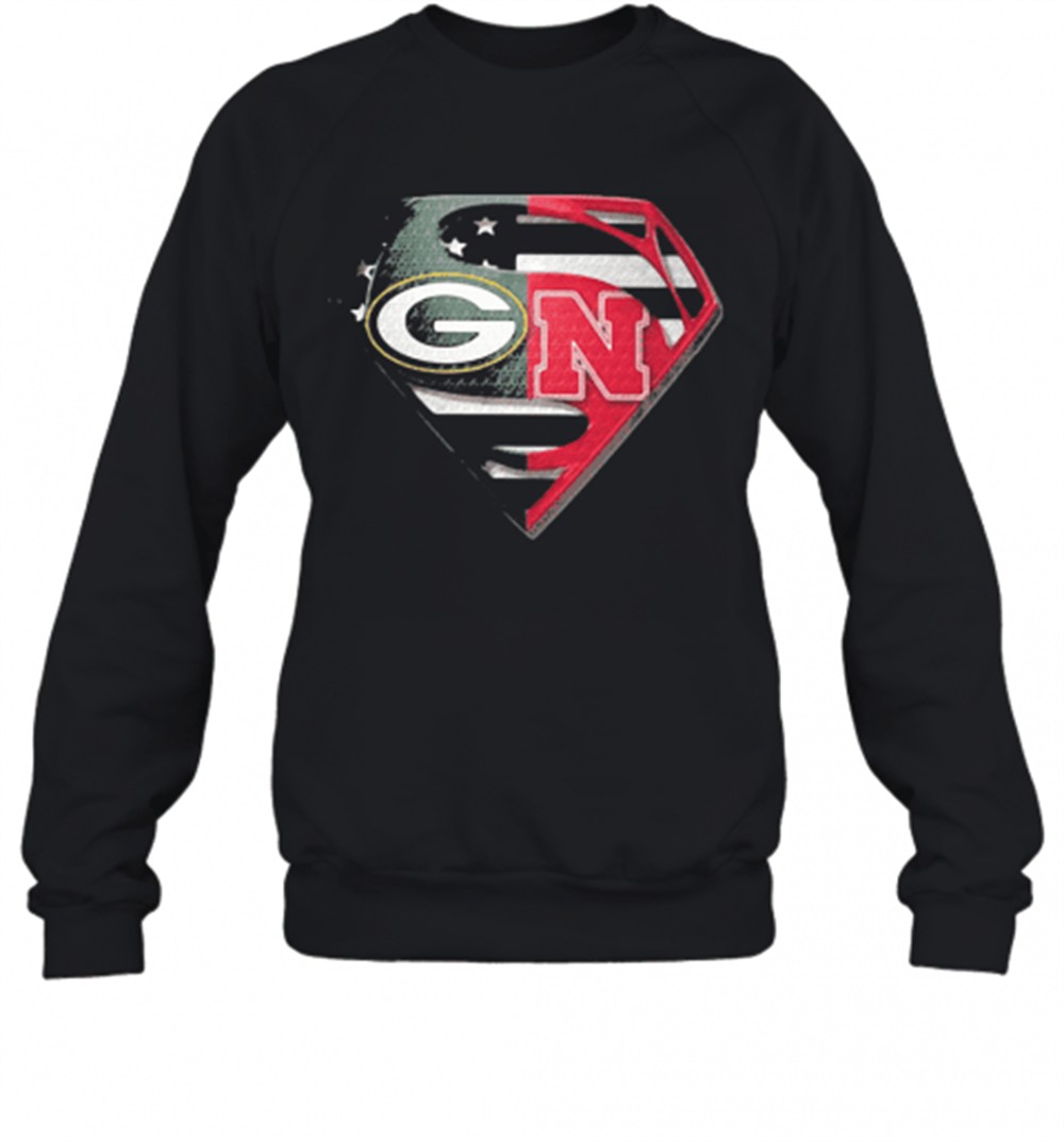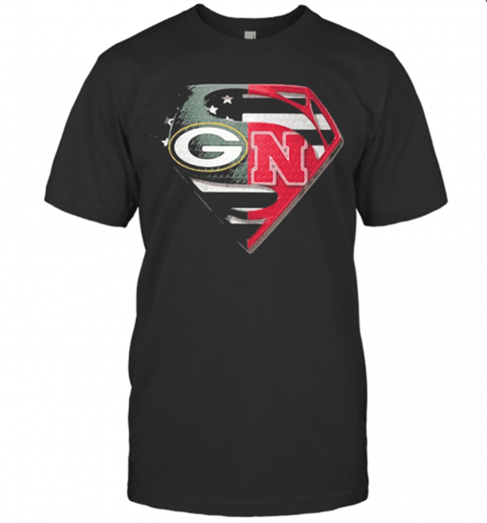 Superhero green bay packers and nebraska cornhuskers diamond american flag independence day shirt T-Shirt