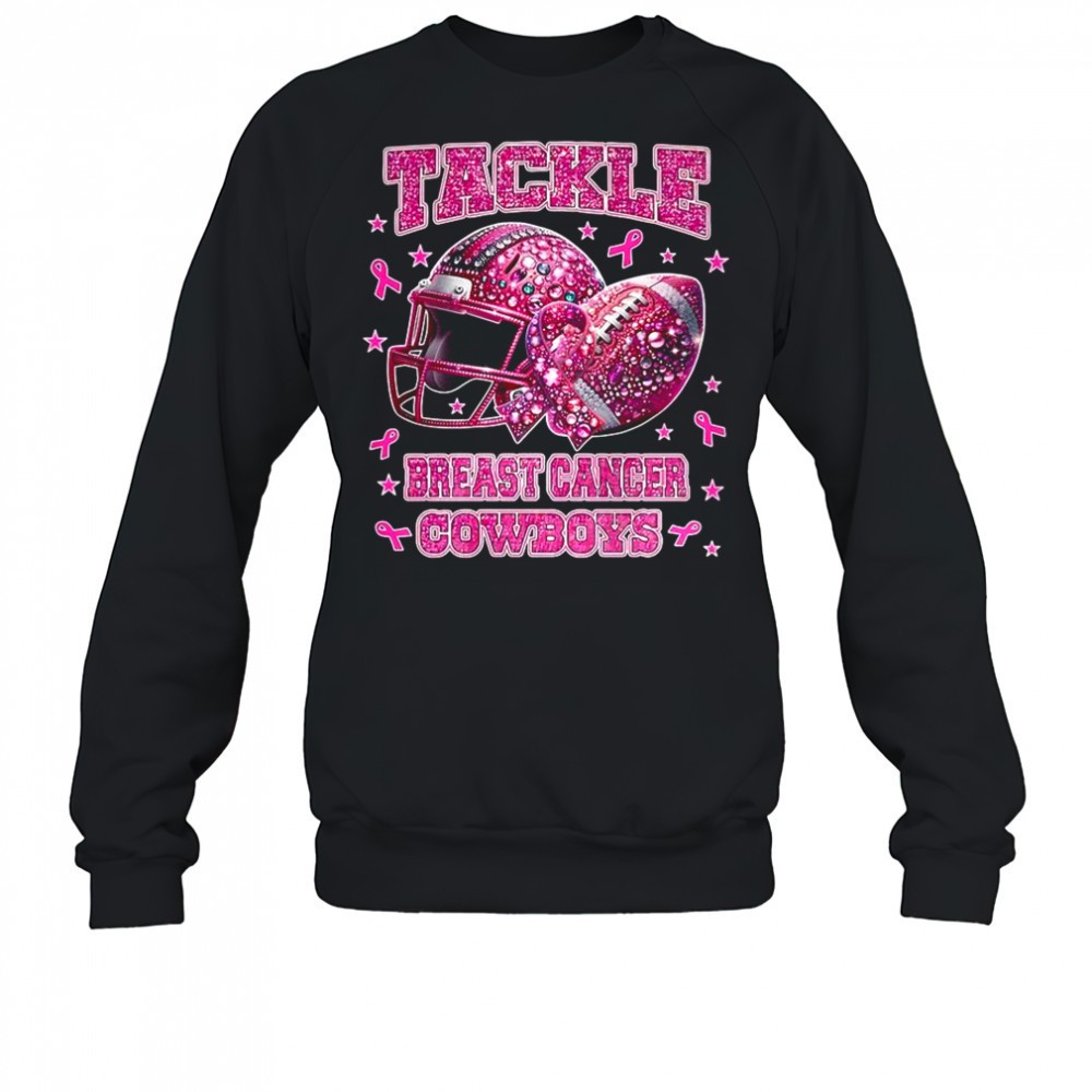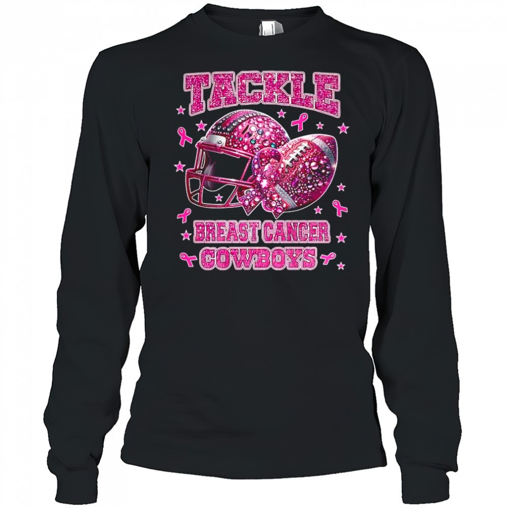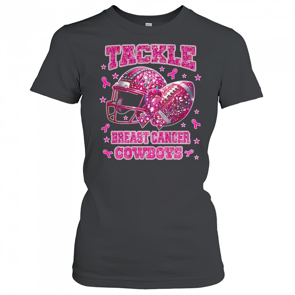 Tackle breast cancer Dallas Cowboys pink ribbon helmet ball diamond shirt