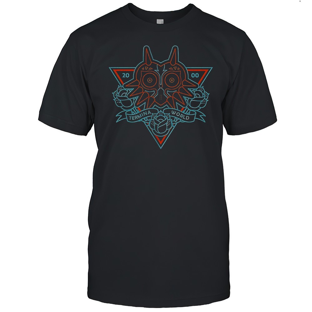 Termina World Majoras Mask Tattoo And A Neon Sign Shirt