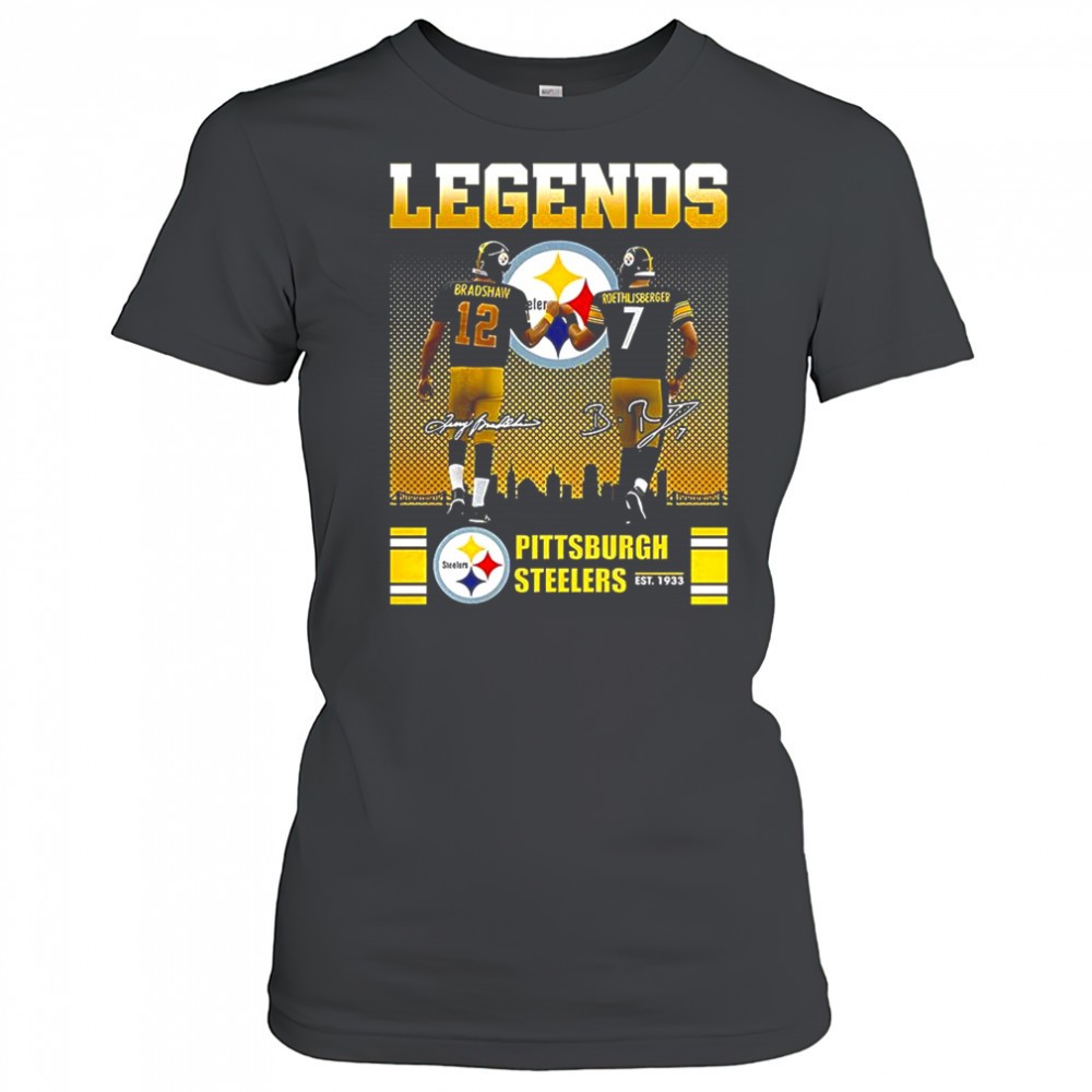 Terry Bradshaw and Ben Roethlisberger Pittsburgh Steelers football legends signature shirt