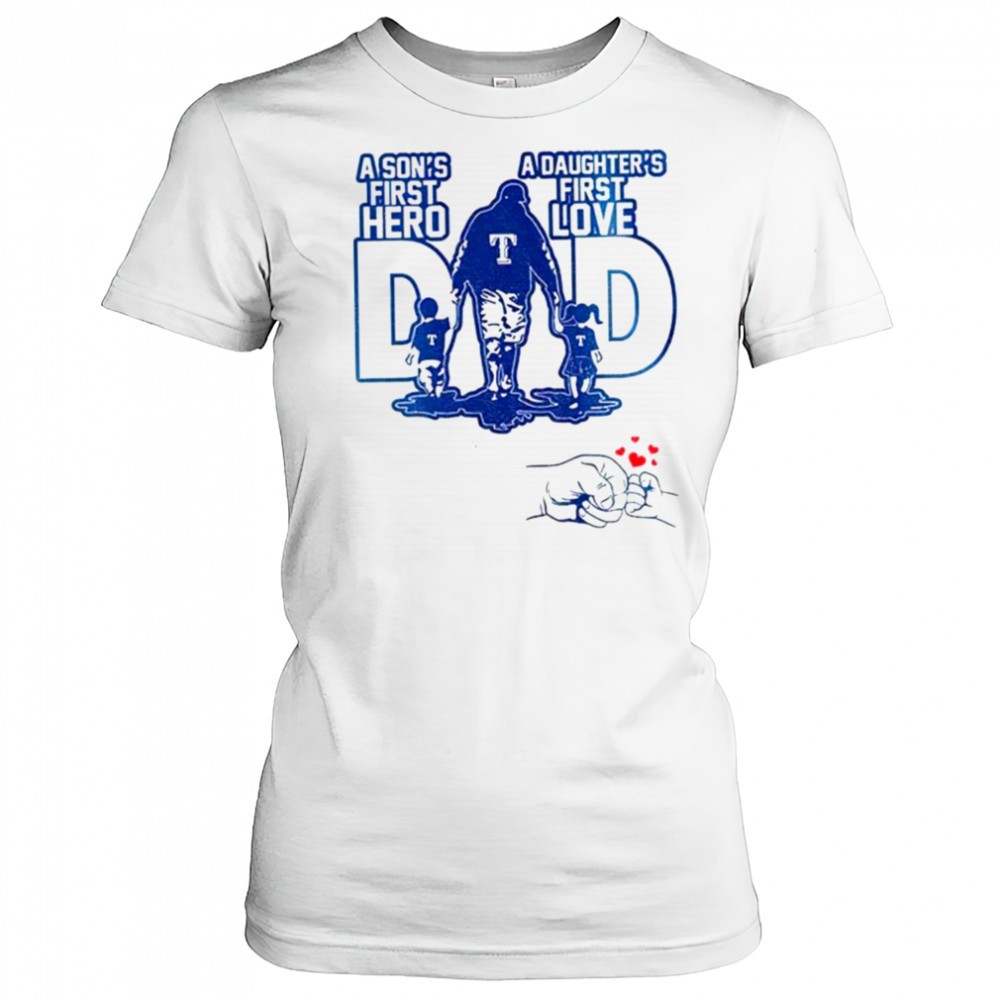 Texas Rangers Dad A sons first hero a daughters first love Happy Fathers Day 2025 shirt