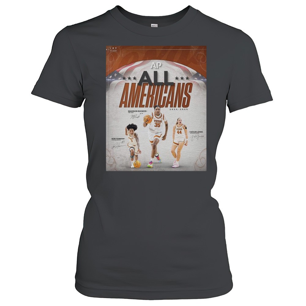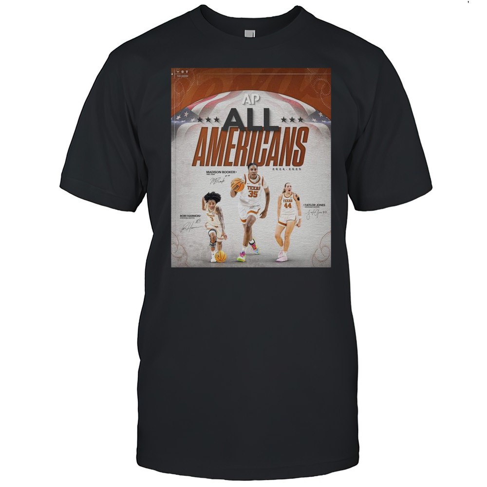 Texas Womens Basketball AP All-Americans 2024-2025 Madison Booker Rori Harmon Taylor Jones Signatures T-shirt
