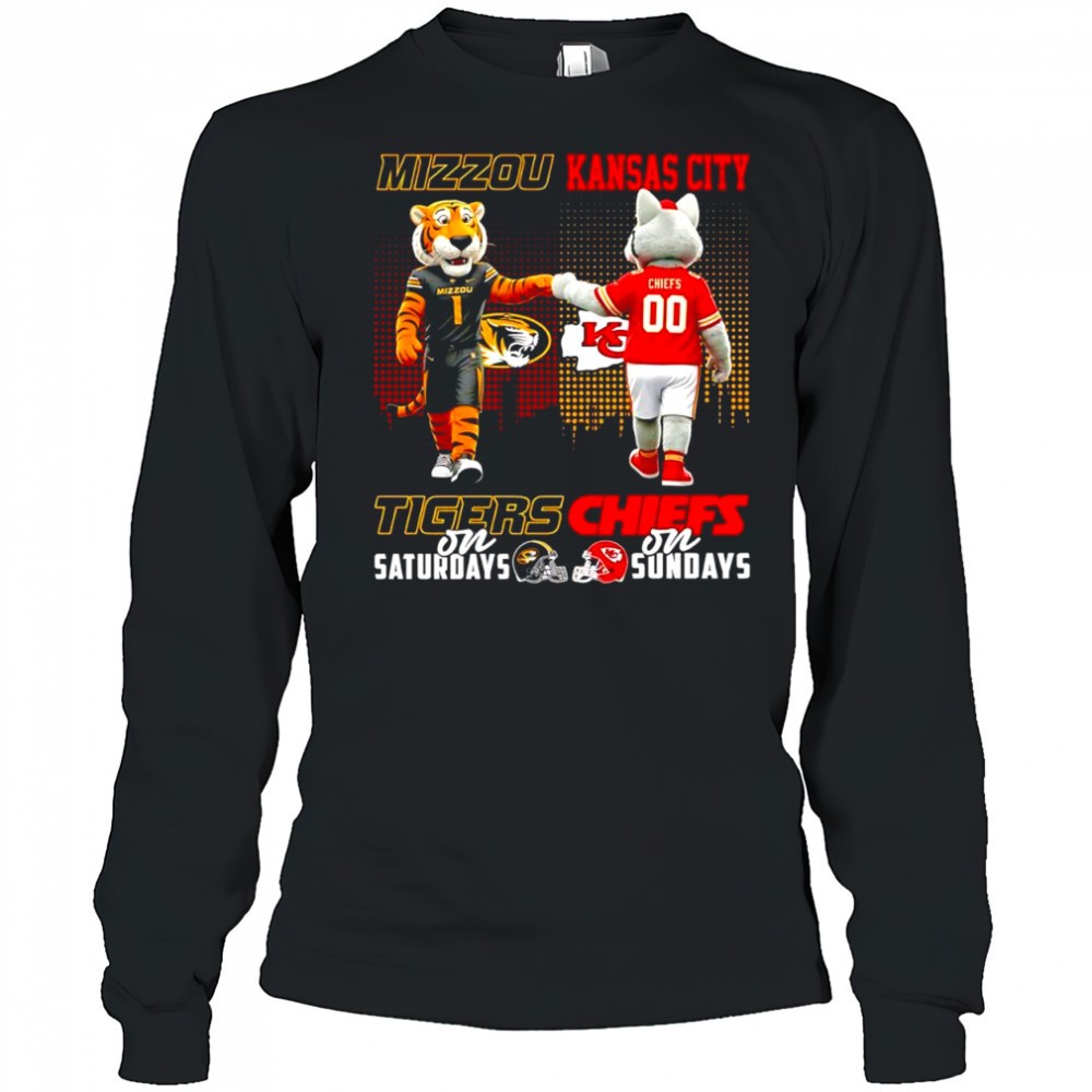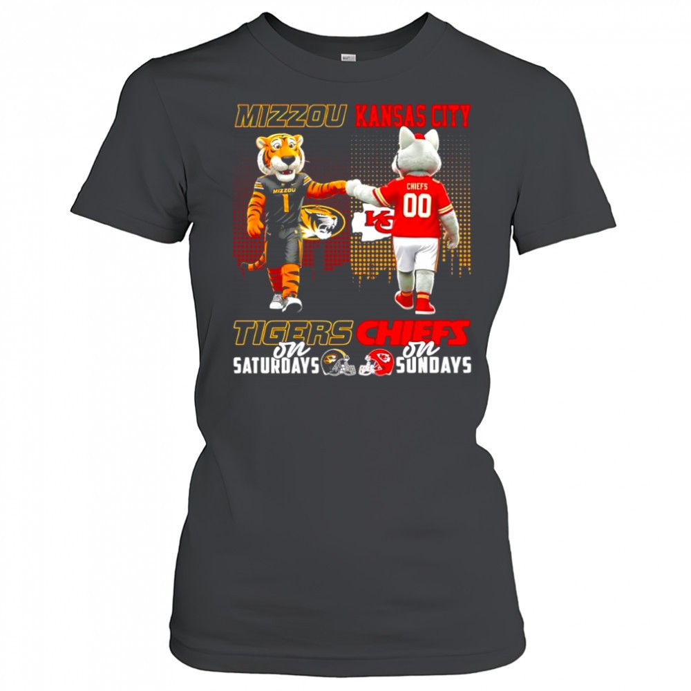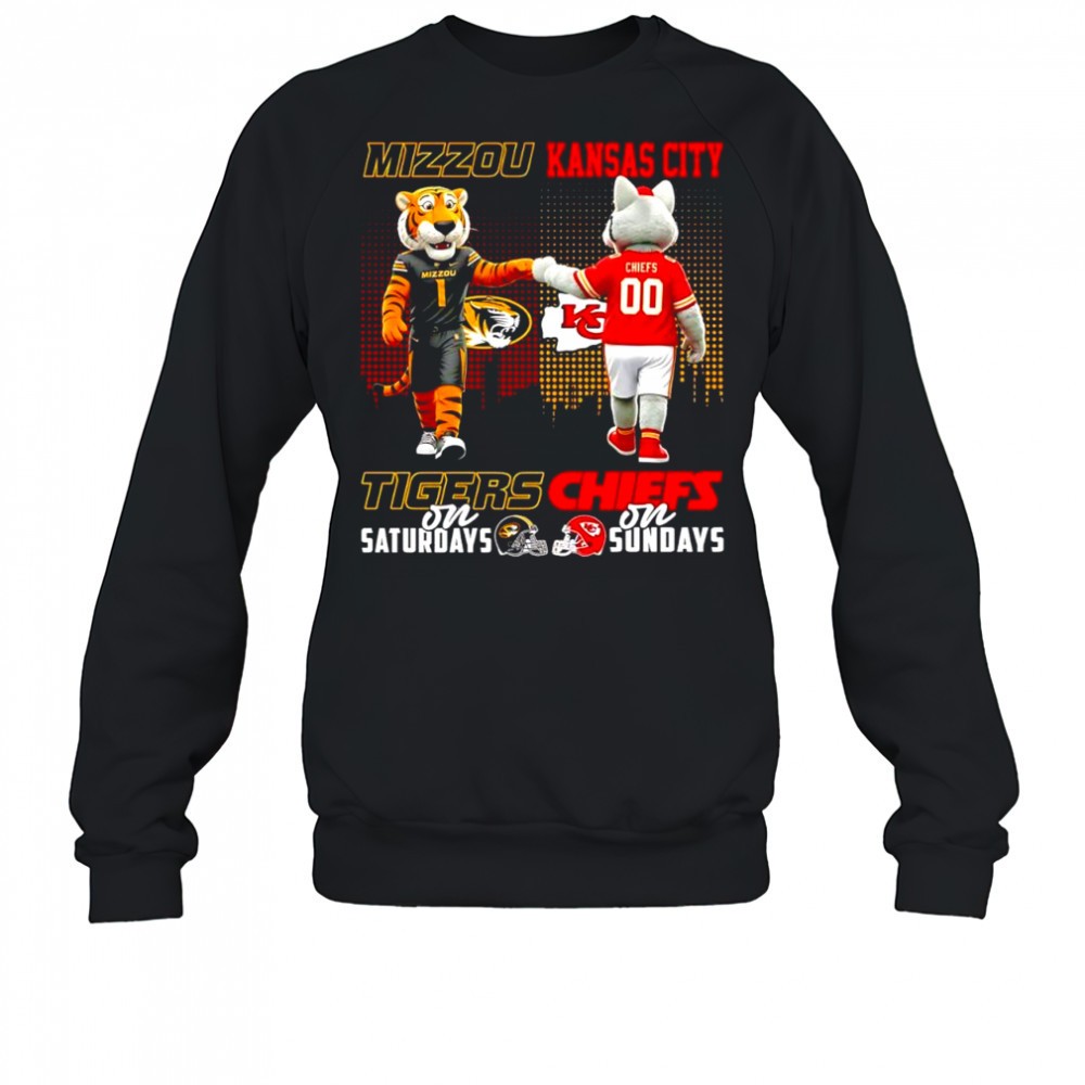 The Mizzou Tiger on Saturdays and Kansas City Chiefs on Sundays mascots college shirt
