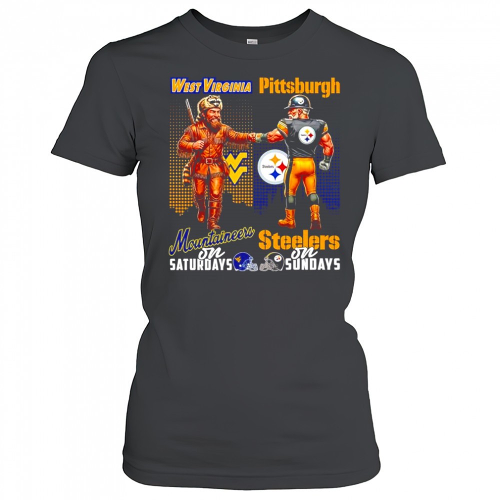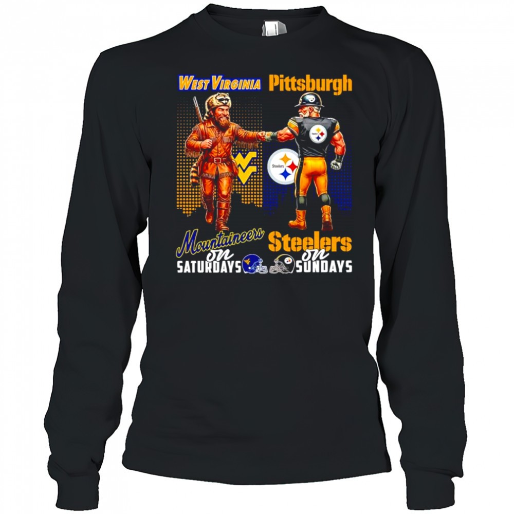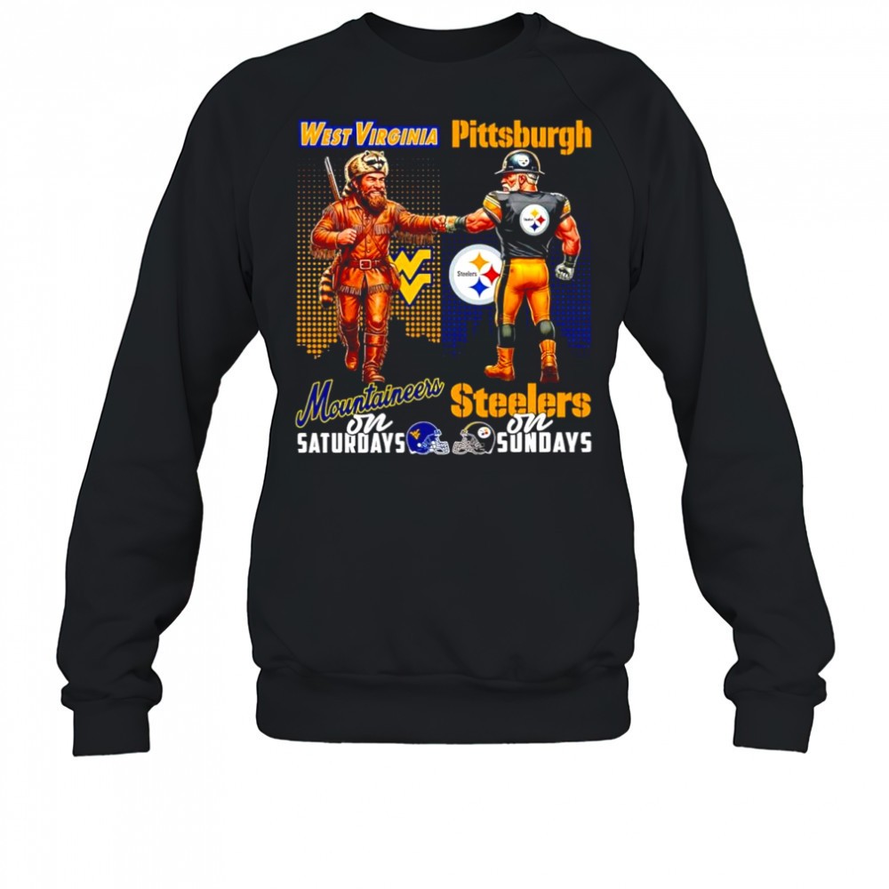 The West Virginia Mountaineers on Saturday and Pittsburgh Steelers on Sundays mascots college shirt