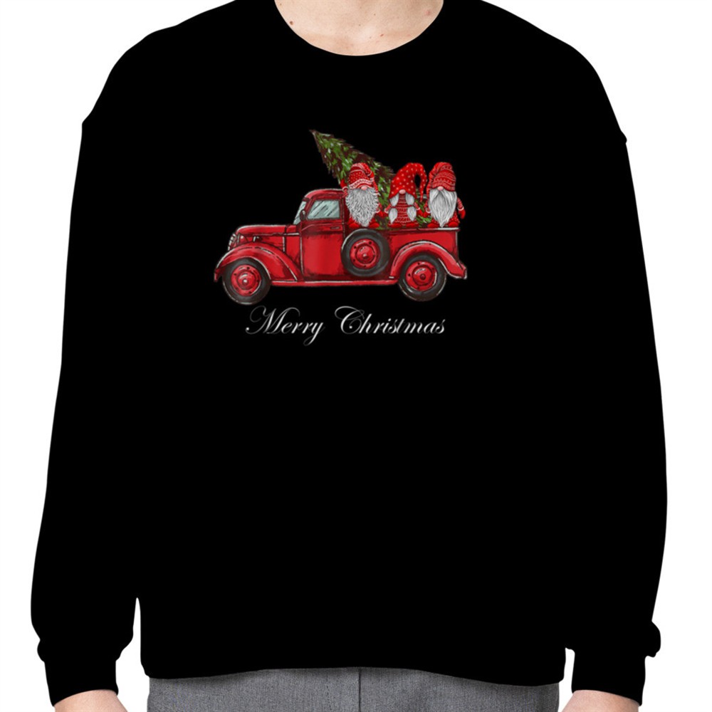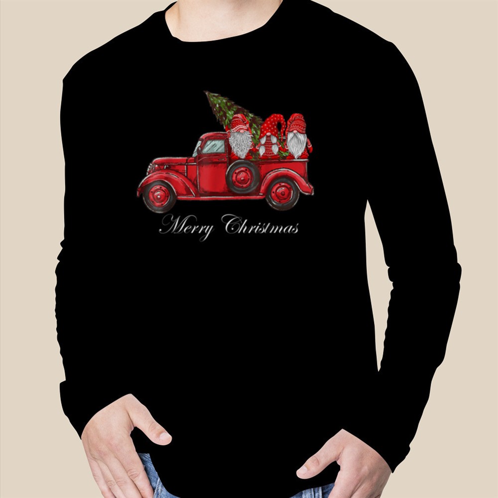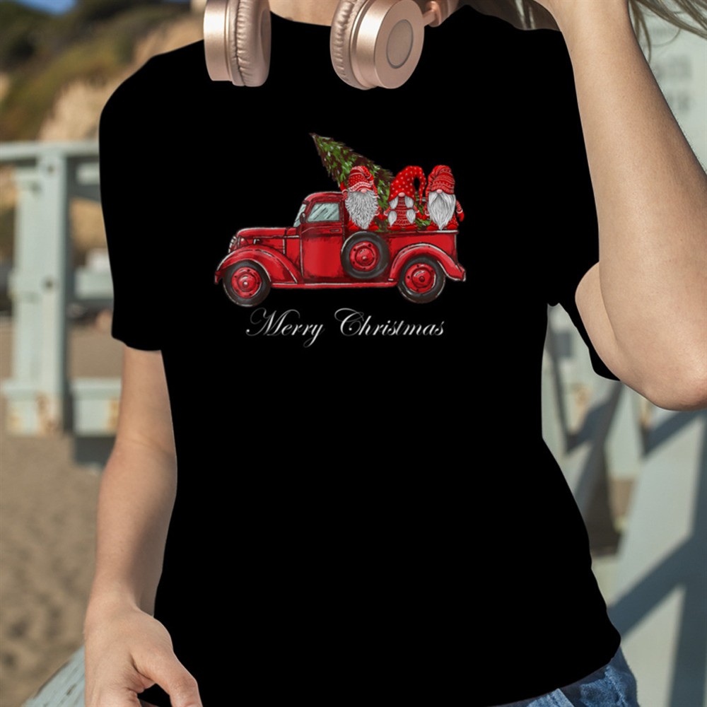 Three Gnomes In Red Truck With Merry Christmas Tree T-Shirt B0BM589VFN
