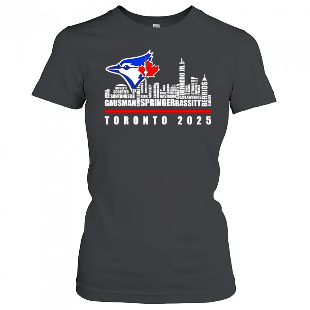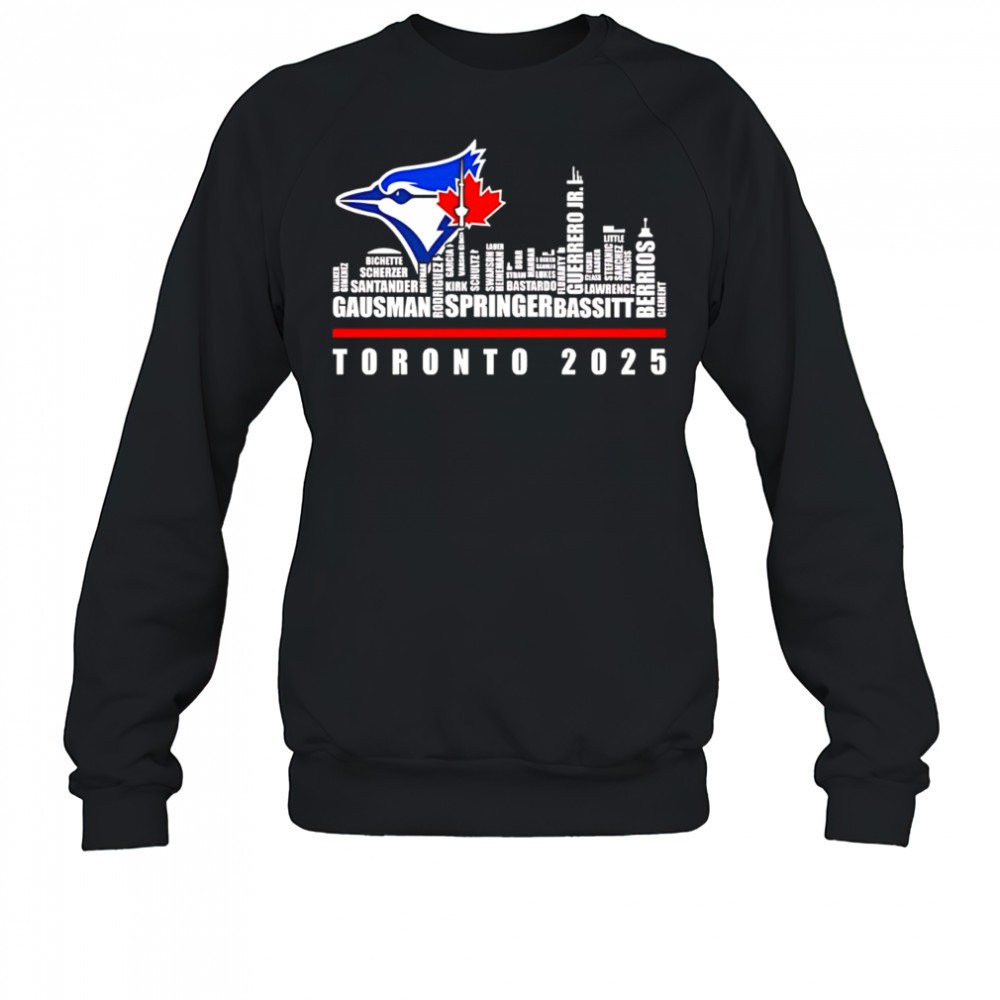 Toronto Blue Jays logo and skyline 2025 Gausman Springer Bassitt shirt