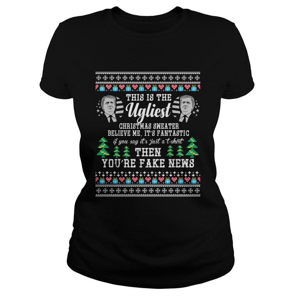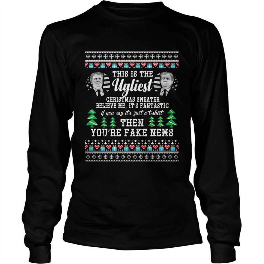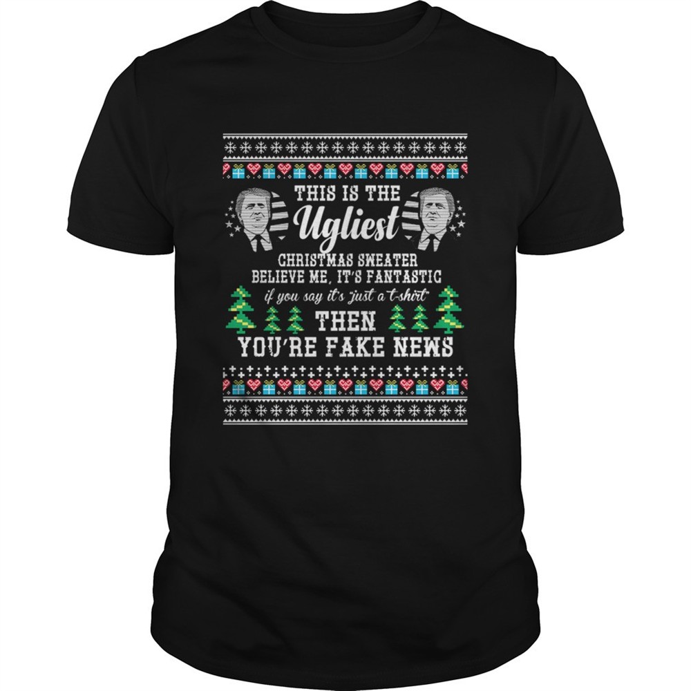 Trump Ugly Christmas Sweater Fantastic Fake News TShirt