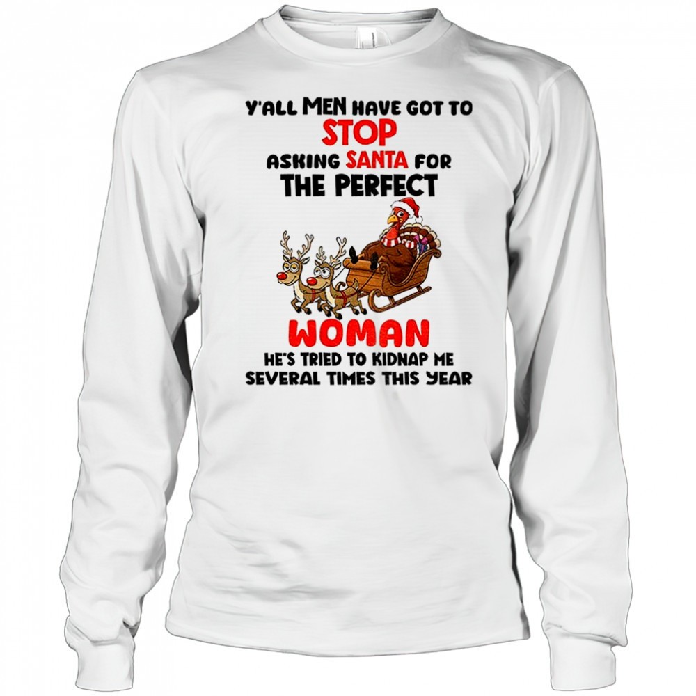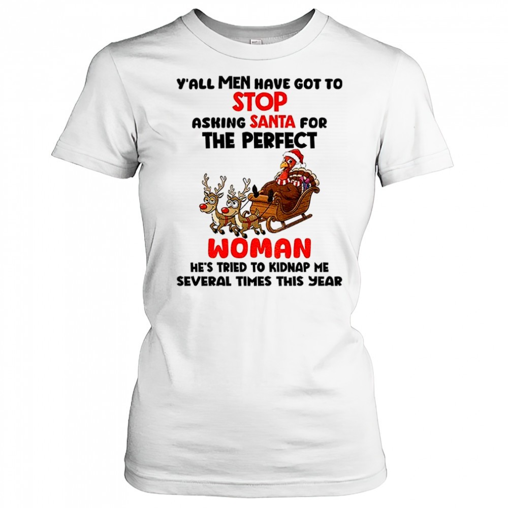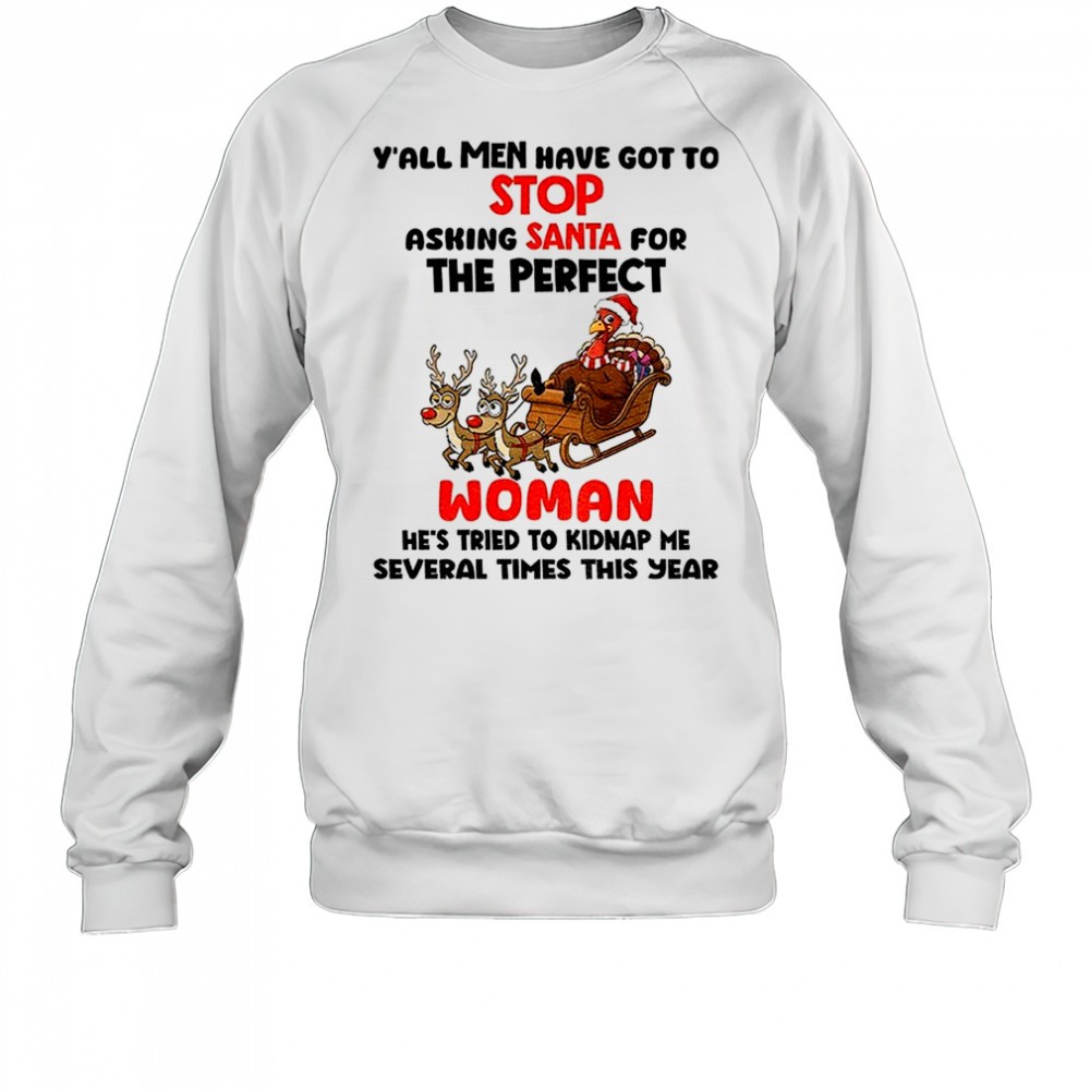 Turkey yall men have got to stop asking santa for the perfect woman hes tried to kidnap Christmas shirt