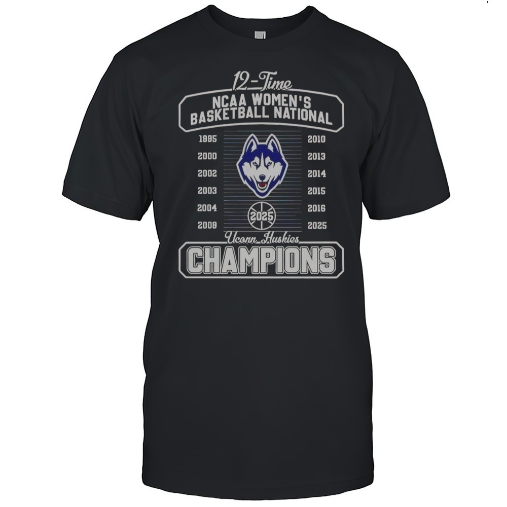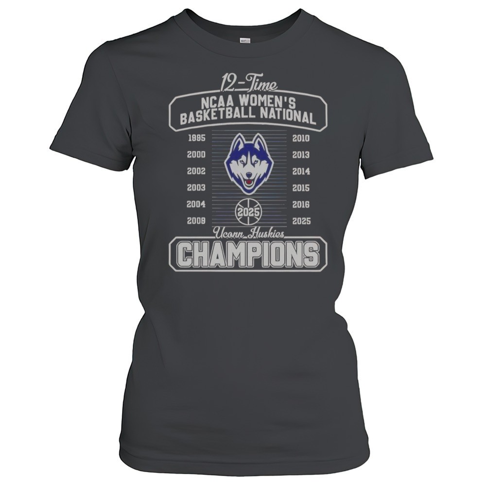 UConn Huskies Fanaticity 2025 12 Time NCAA Womens Basketball National Champions T-Shirt