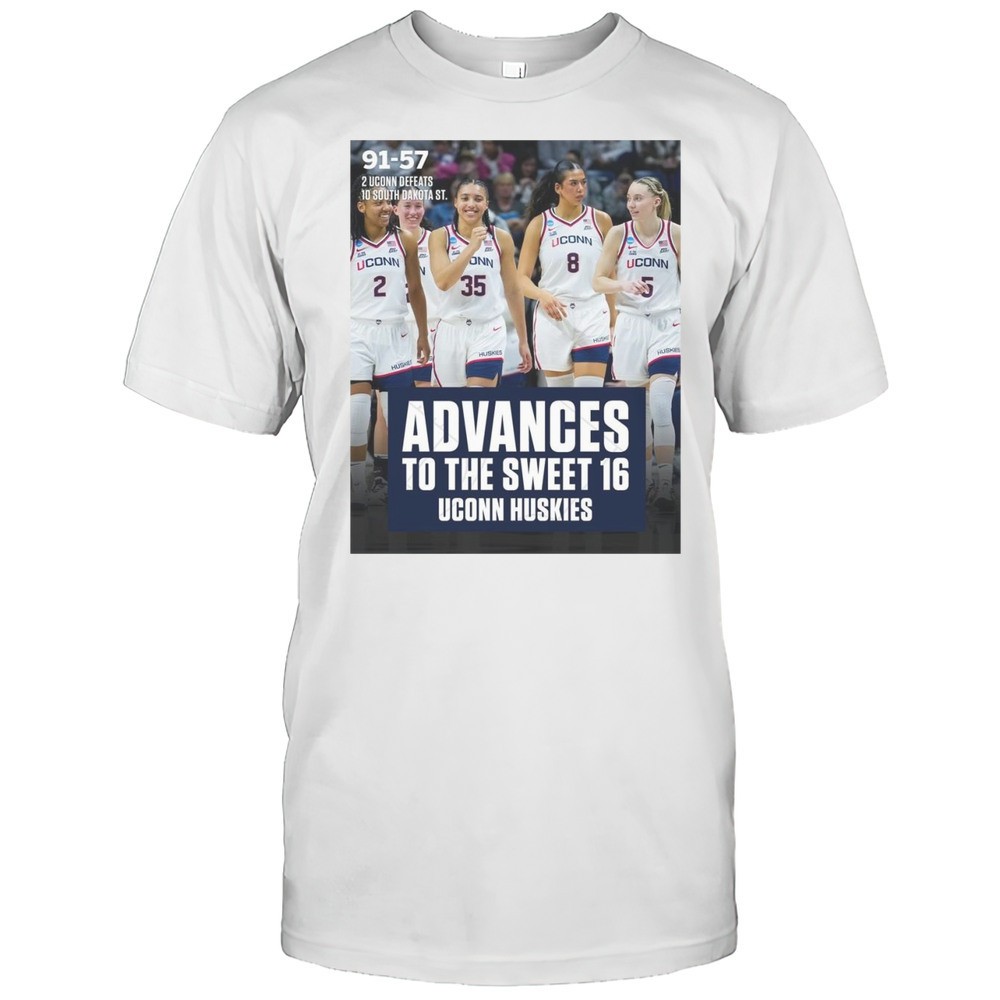 UConn Huskies Snaps South Dakota States 20-game Win Streak To Advance To The Sweet 16 NCAA 2025 T-shirt