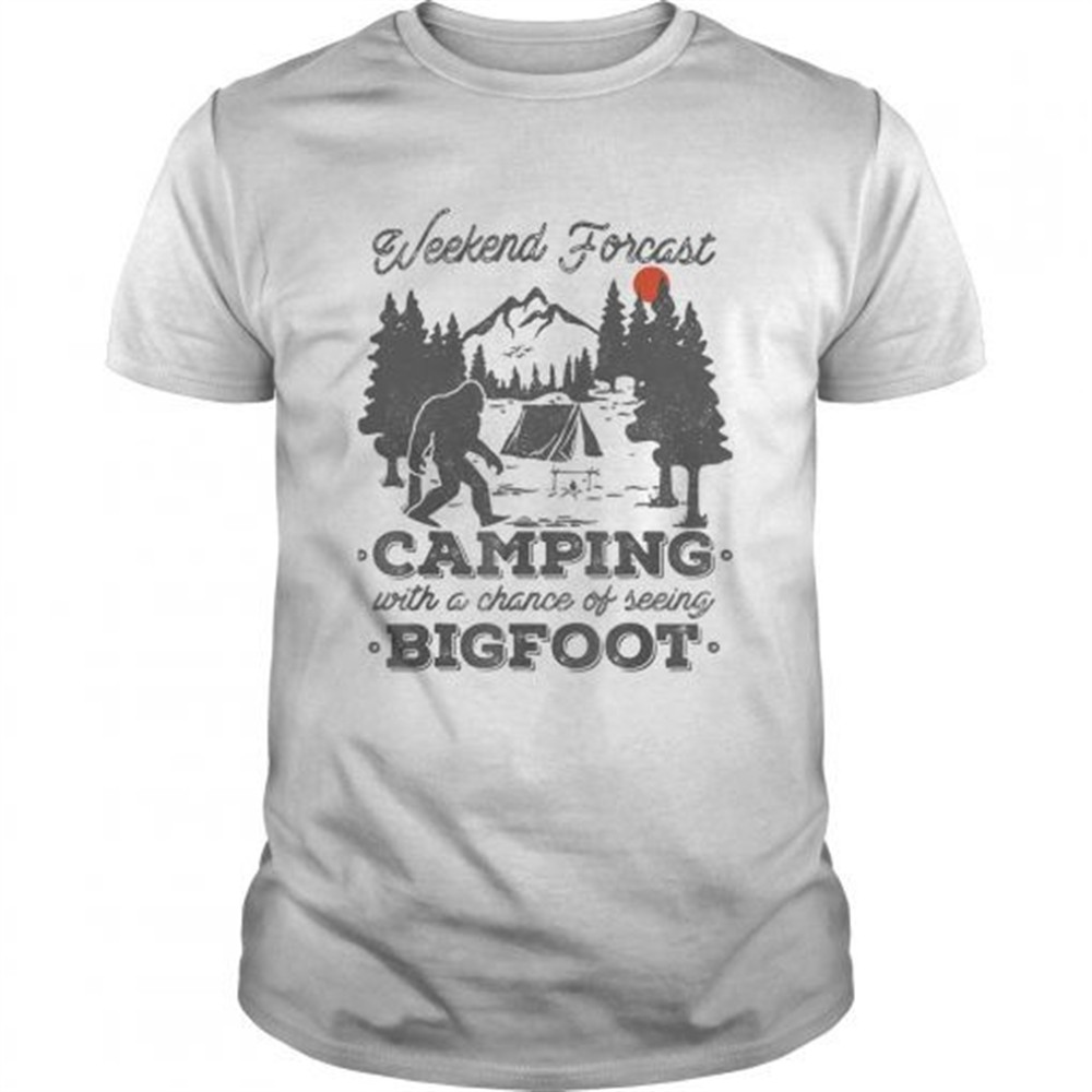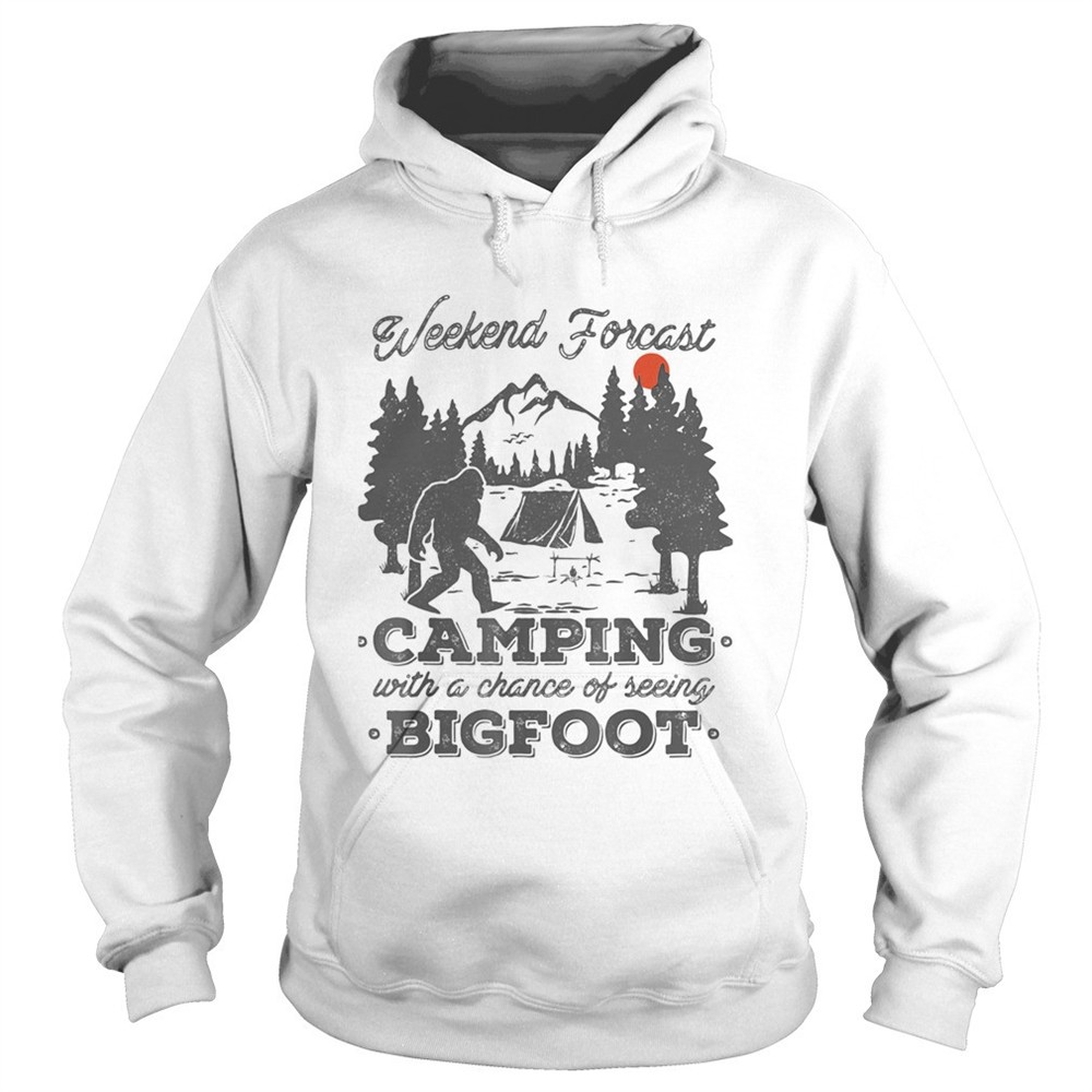Weekend forecast camping with a chance of seeing bigfoot sunset shirt