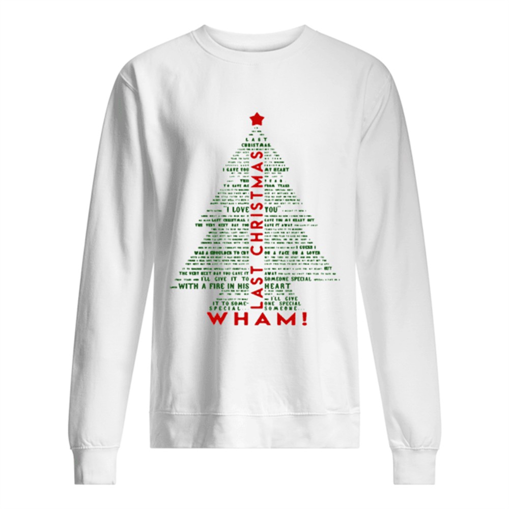 Wham Last Christmas Lyric Christmas Tree Typography Shirt