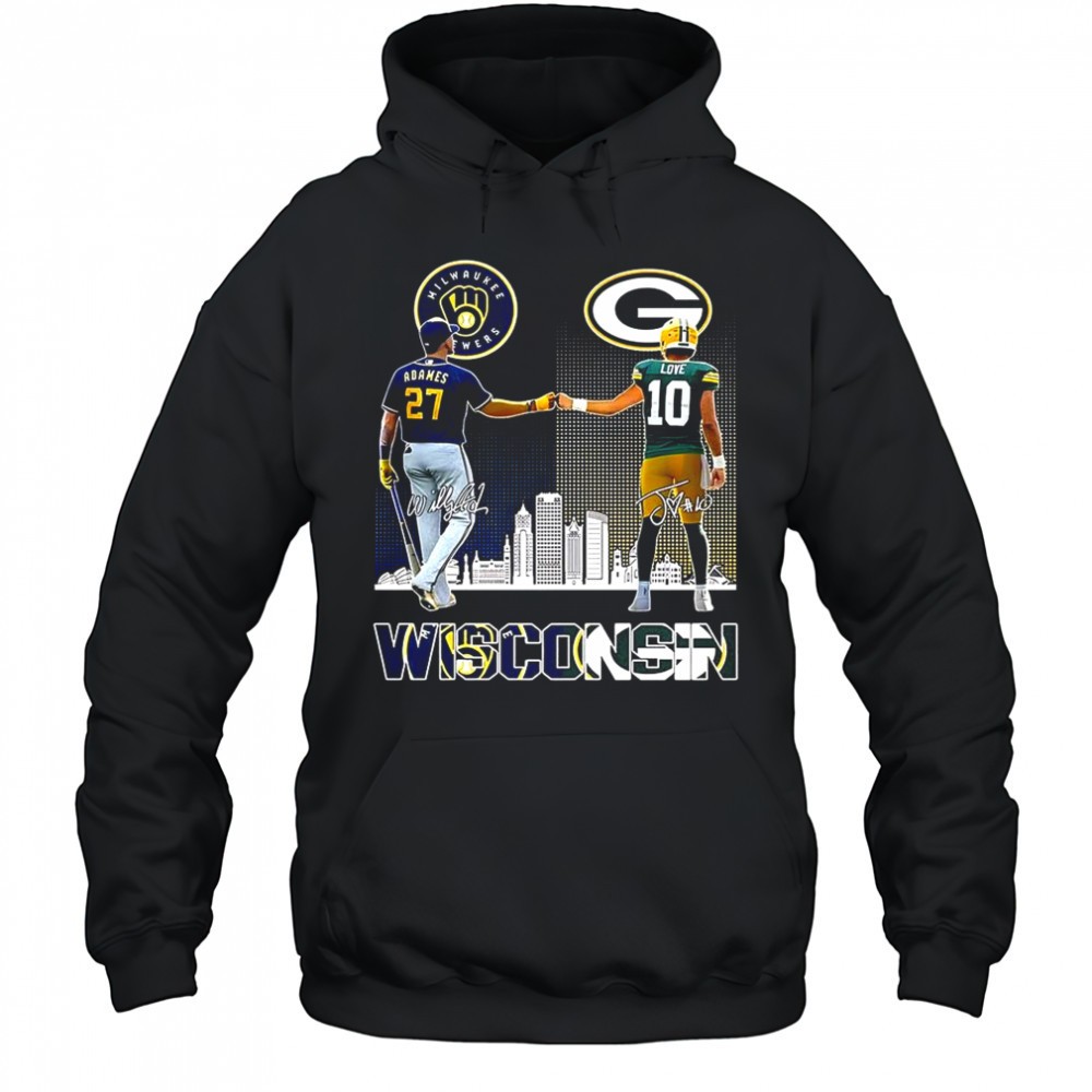 Willy Adames Milwaukee Brewers touch hand Jordan Love Green Bay Packers 2025 signature shirt