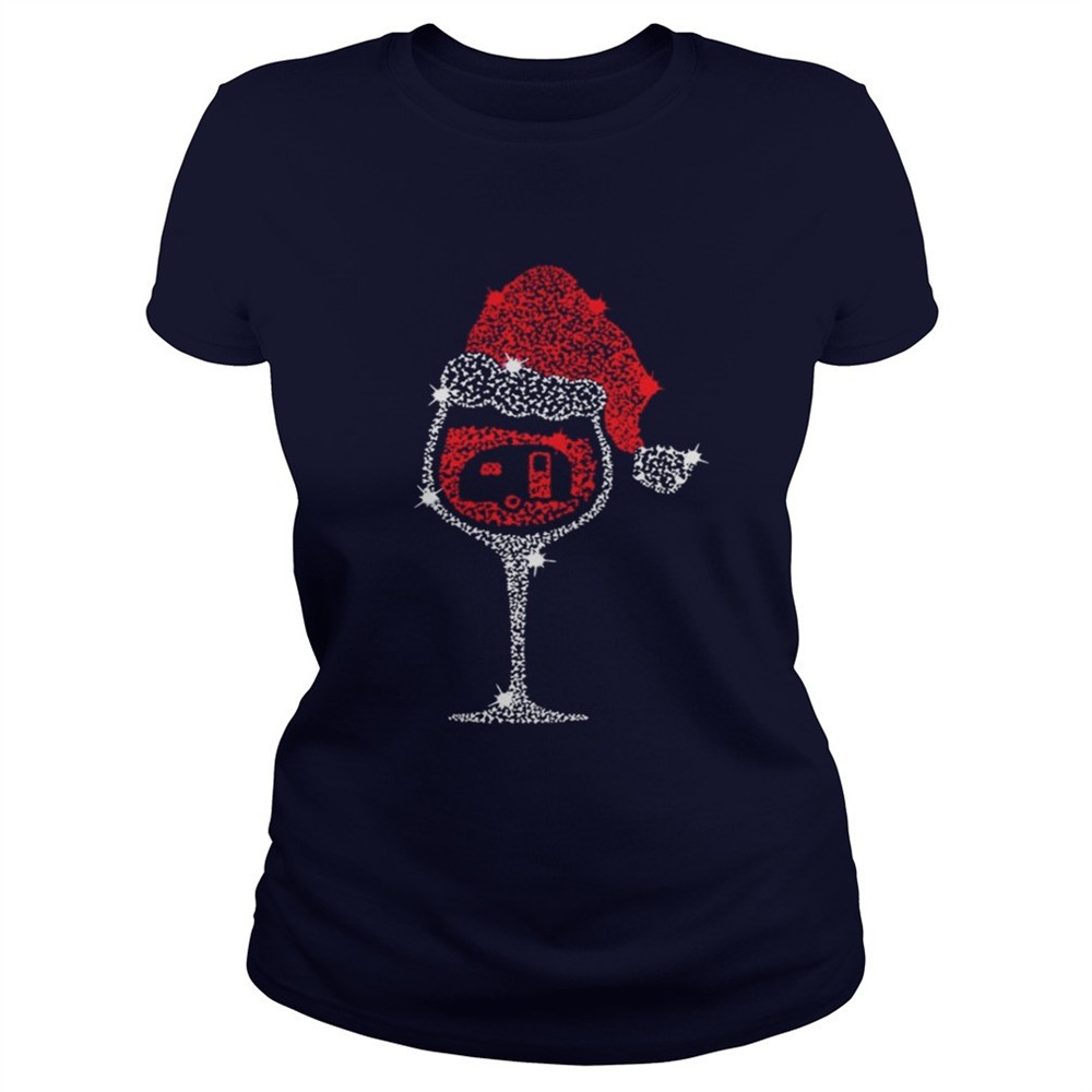 Wine Glass Red Santa Hat Camping Diamond shirt