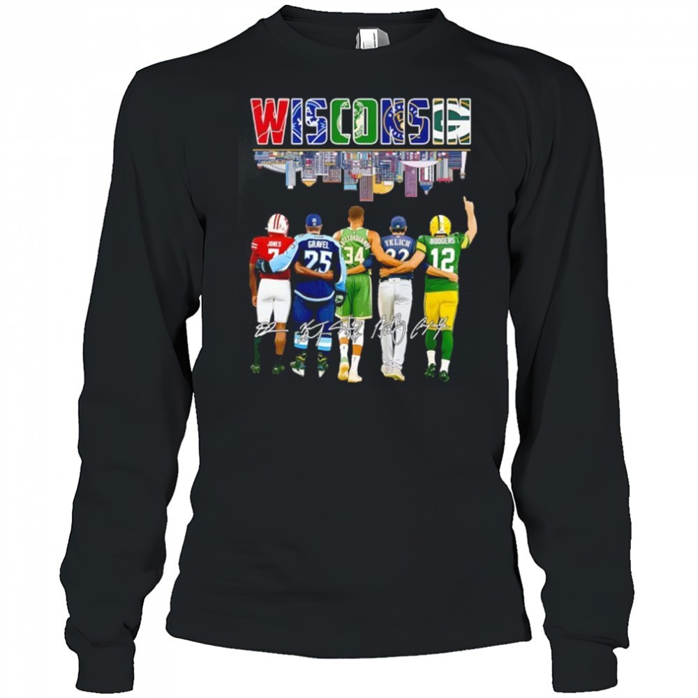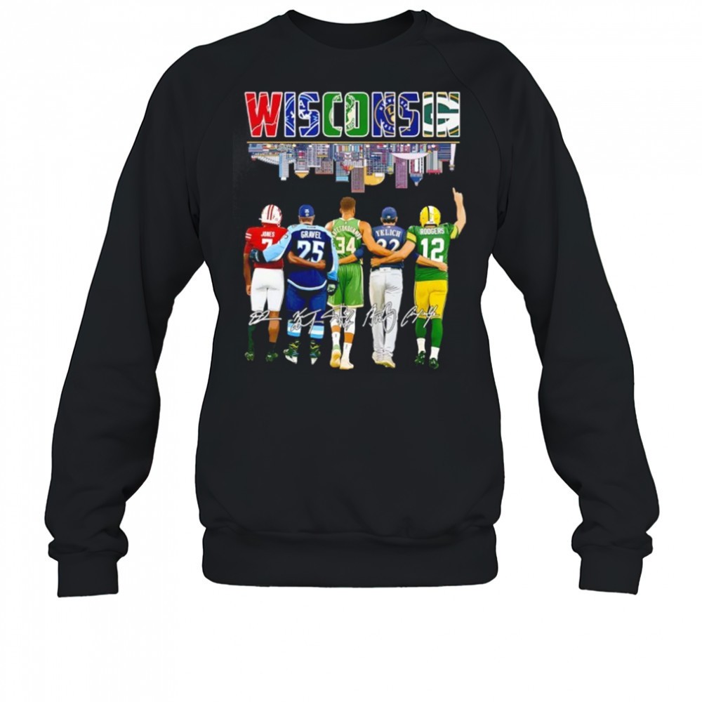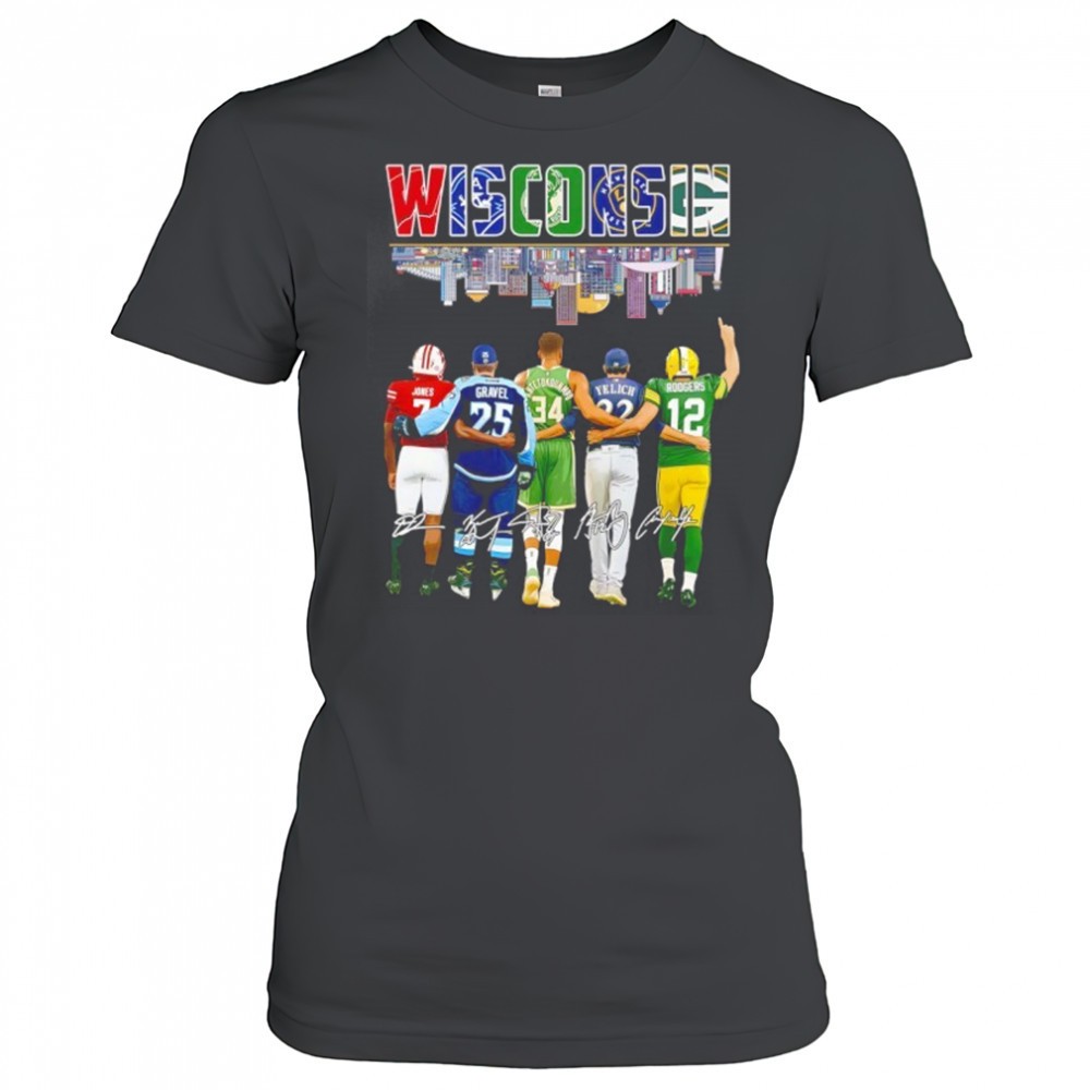 Wisconsin Dilin Jones Noah Gravel Giannis Antetokounmpo Christian Yelich Aaron Rodgers Signatures Shirt