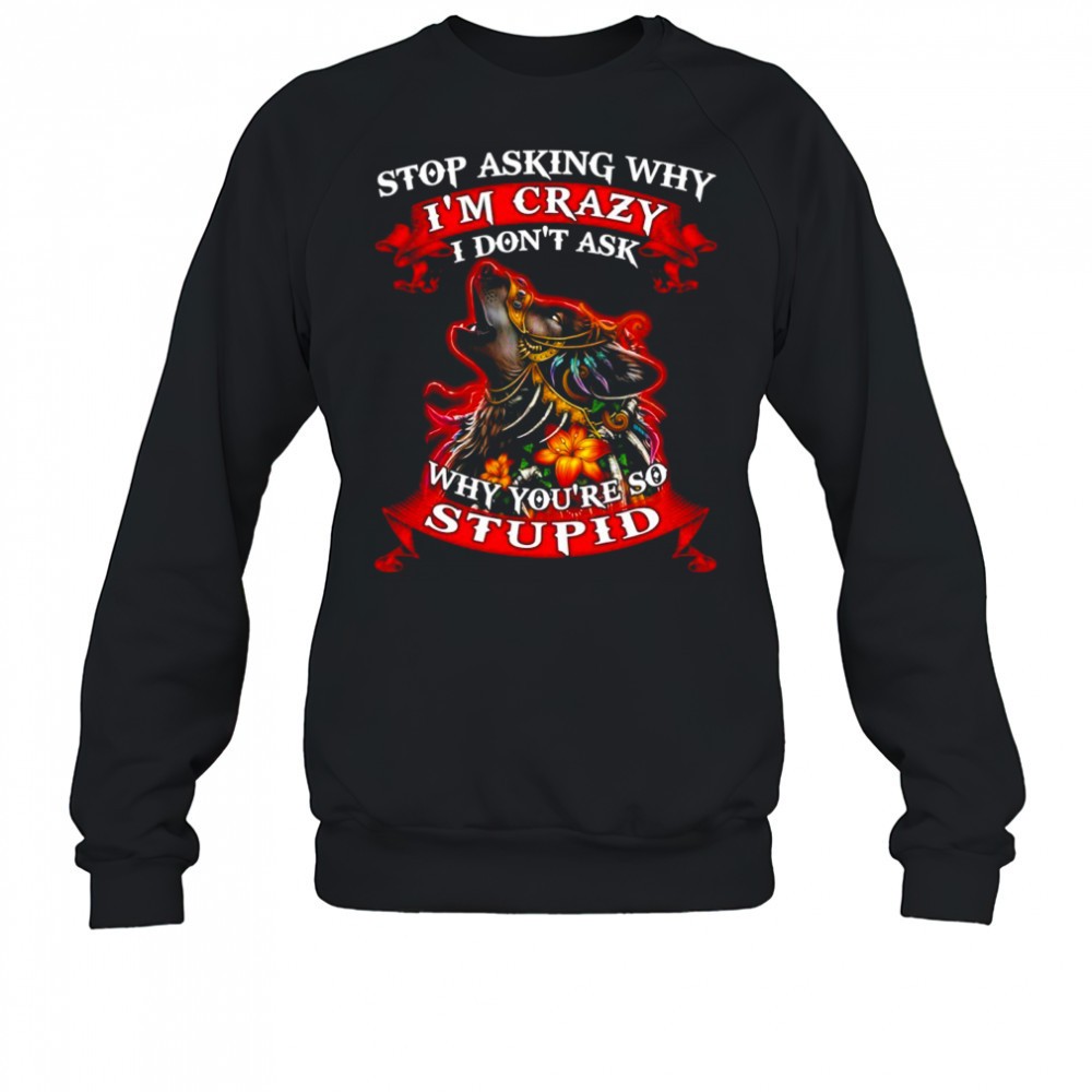 Wolf stop asking why Im crazy I dont ask why youre so stupid shirt