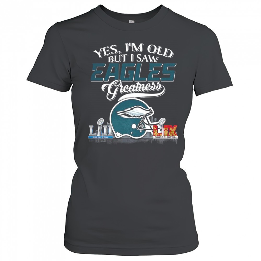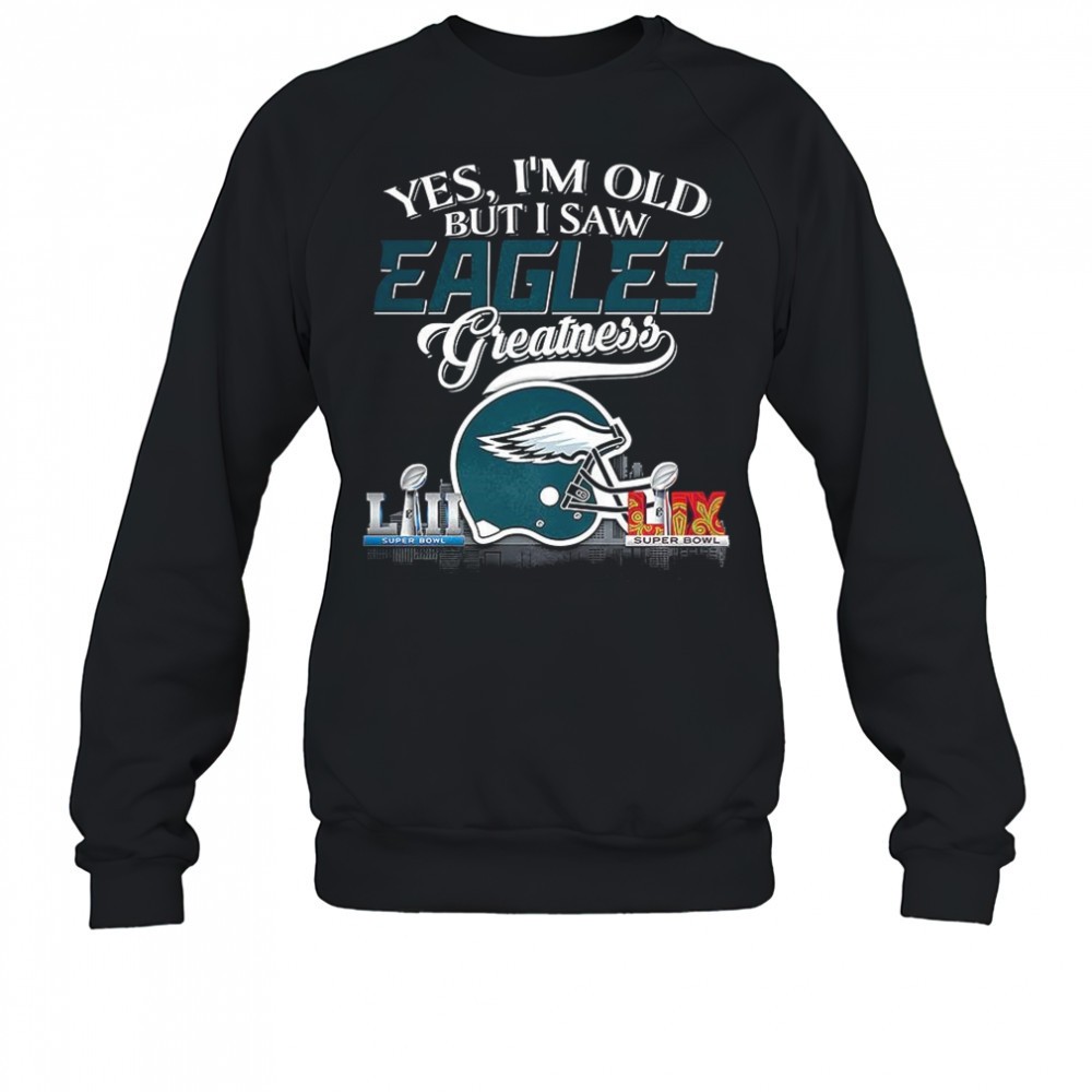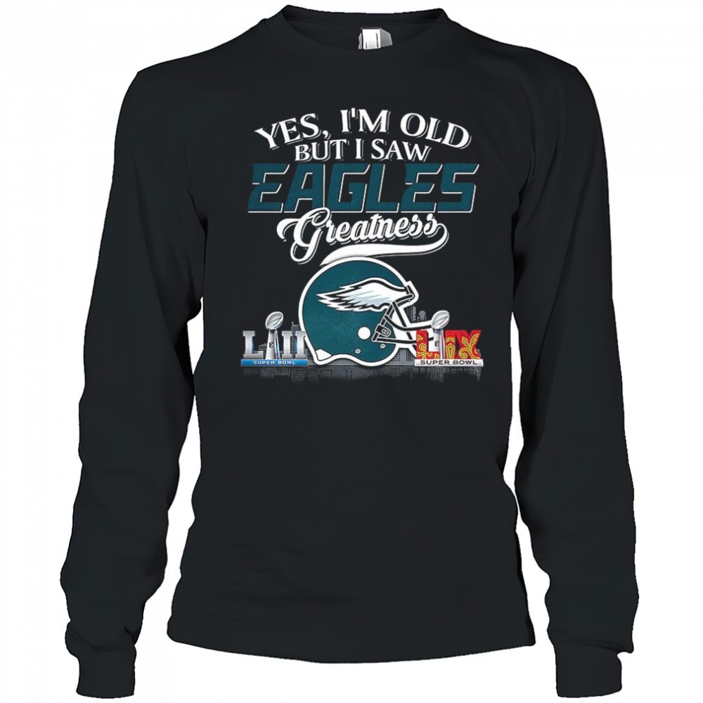 Yes Im old but I Philadelphia Eagles greatness Super Bowl helmet skyline shirt