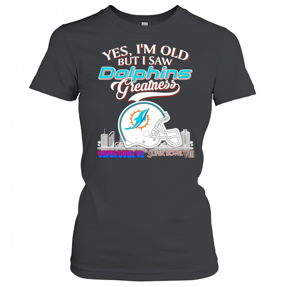 Yes im old but i saw Miami Dolphins Greatness helmet logo shirt