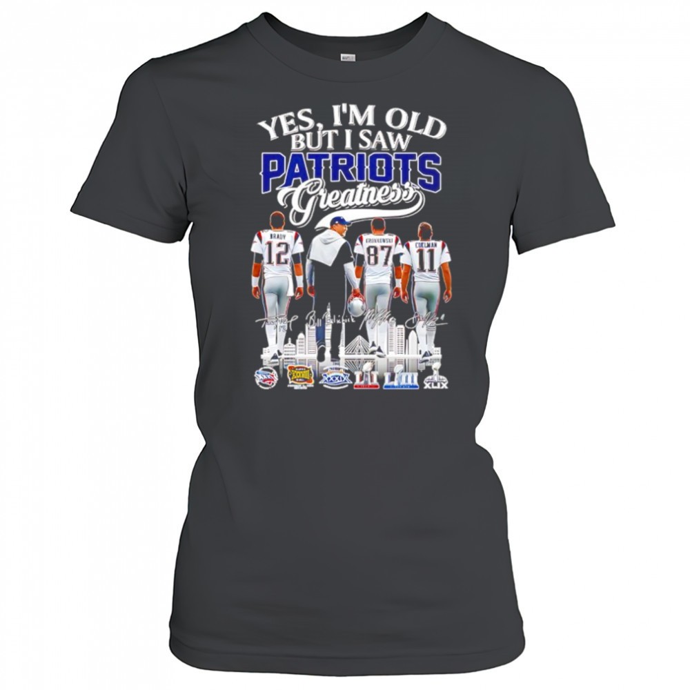 Yes im old but i saw New England Patriots Super Bowl Champions signatures greatness shirt